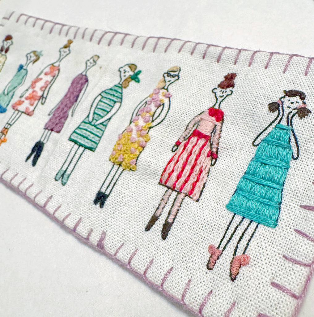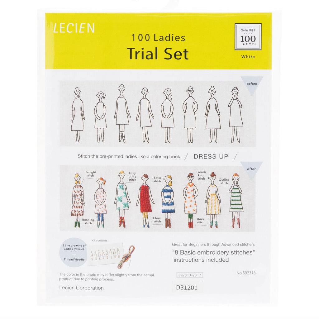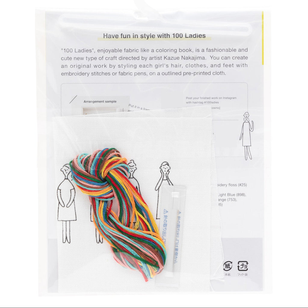 Designed by Kazue Nakajima of Quilts1989, this 100 Ne-San (Ladies) sampler kit includes 8 line drawings that you can embroider, appliqué, stitch, or paint however you like. The sky's the limit! Once completed, you can frame the entire piece or cut out individual ladies to use as patches, brooches, earrings, pendants, and more.