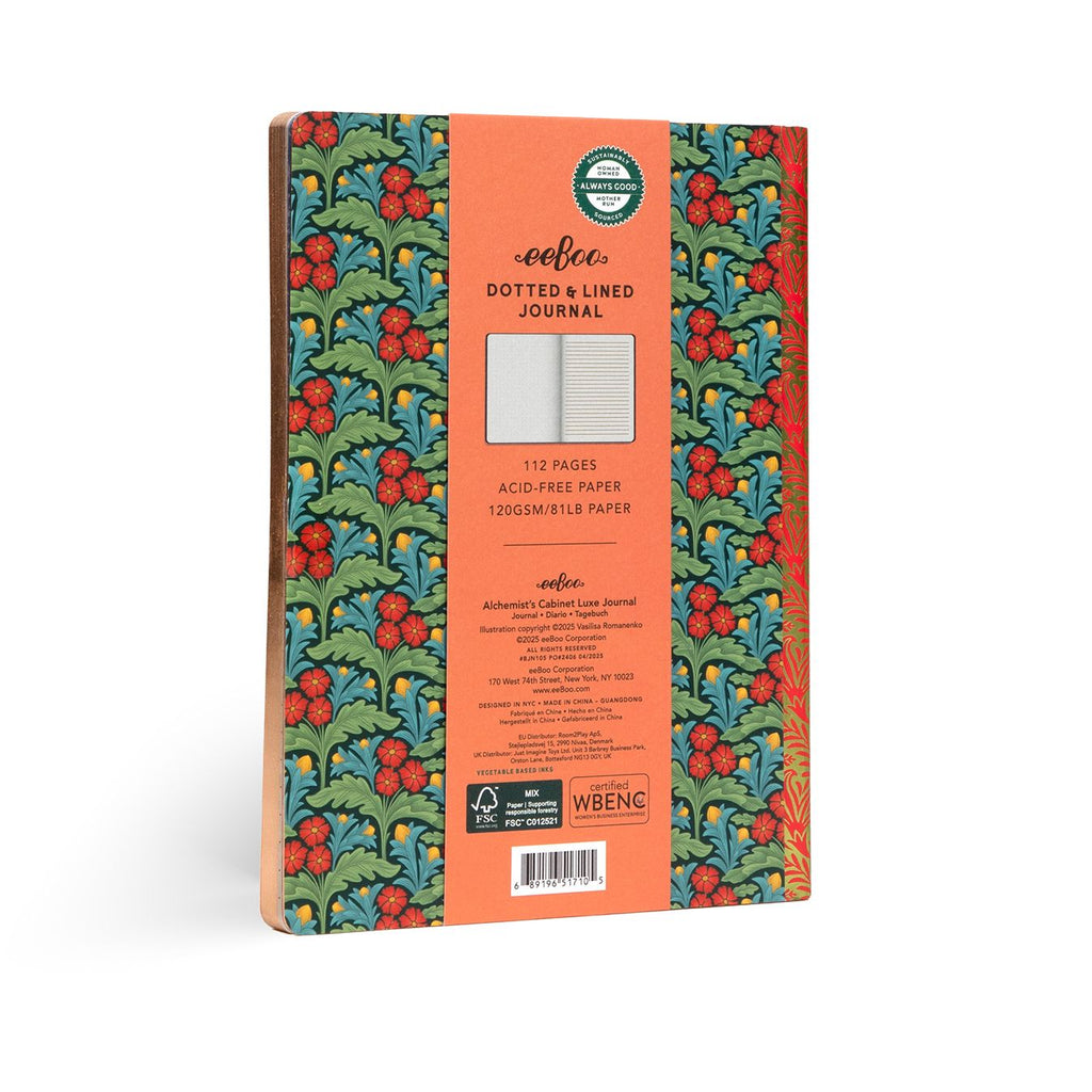 This journal features an eccentric collector’s cabinet still life by artist Vasilisa Romanenko. Gorgeous gilding on the edges, lustrous foil on the spine, and vivid endpapers make this the perfect gift or personal journal.
