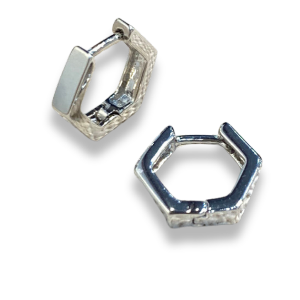 Make your ears sparkle with these sleek, classic huggie hoops featuring a modern hexagonal shape. These hoops add a timeless touch to any outfit.