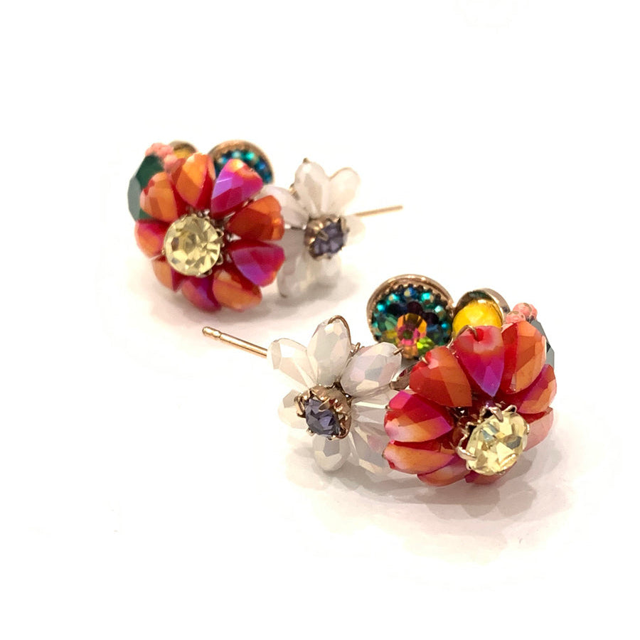 Make a statement with these eye-catching floral hoops! Featuring swarovski crystals, multi-color gemstone flowers, and an antique gold finish, these hoops are made to make your ears sparkle.