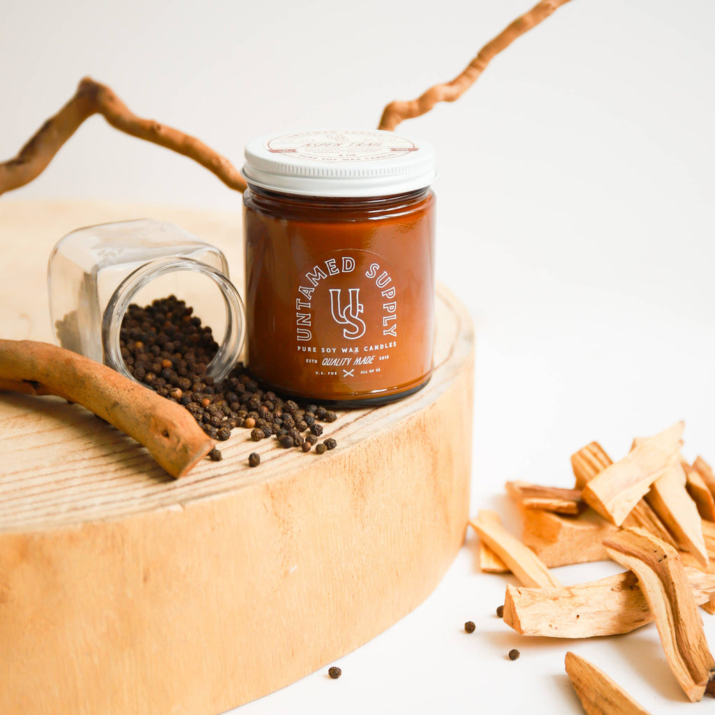Ever been in an Aspen Grove? Picture it with me: coin shaped leaves lightly rustling in the wind, bright colors peaking through white branches, cool mountain air. Ahhhhh. Although we cannot transport you there physically, this candle is the second best thing. Cool, crisp, masculine, bright-- Aspen Trail will relax & rejuvenate, even if it's not a trip to the Rockies.