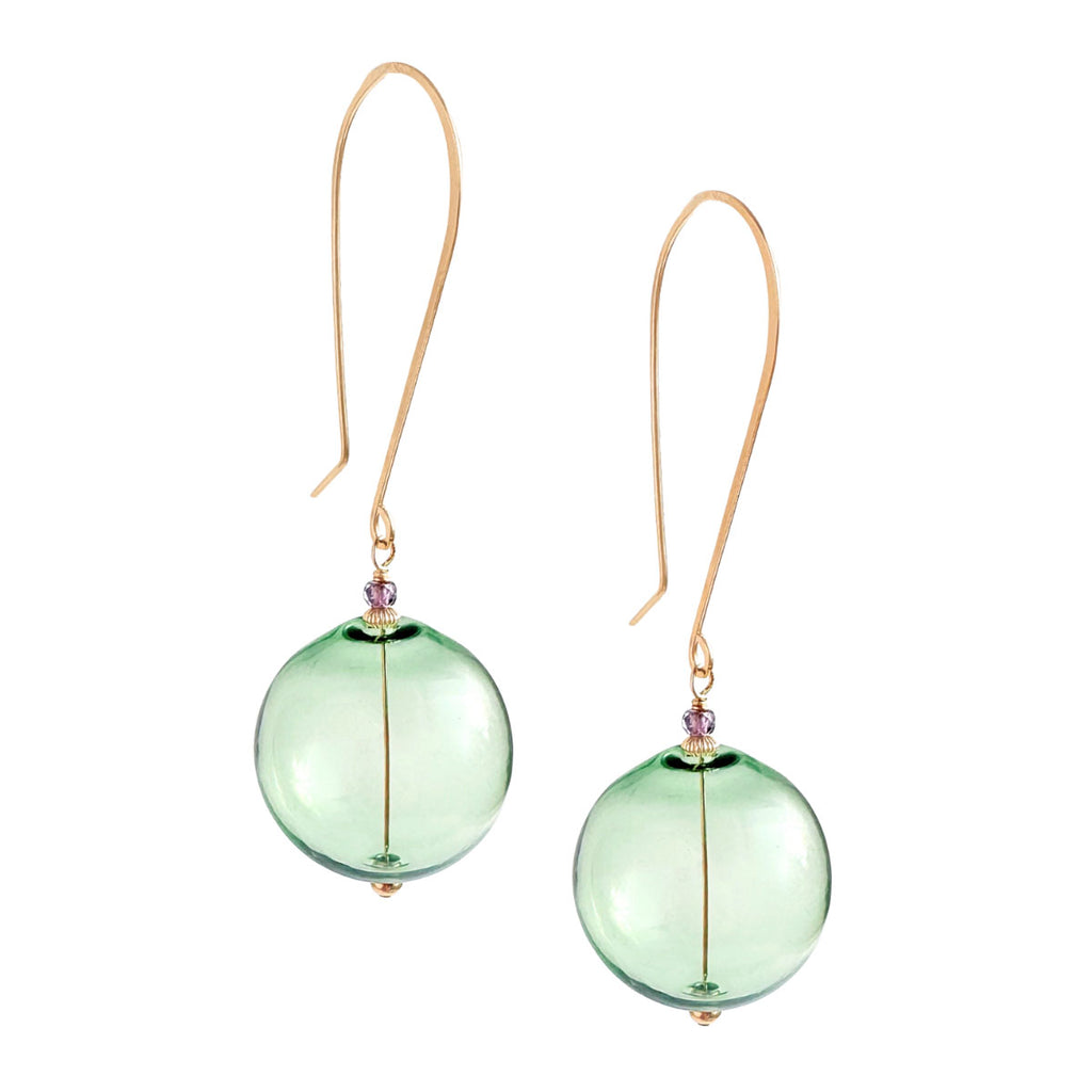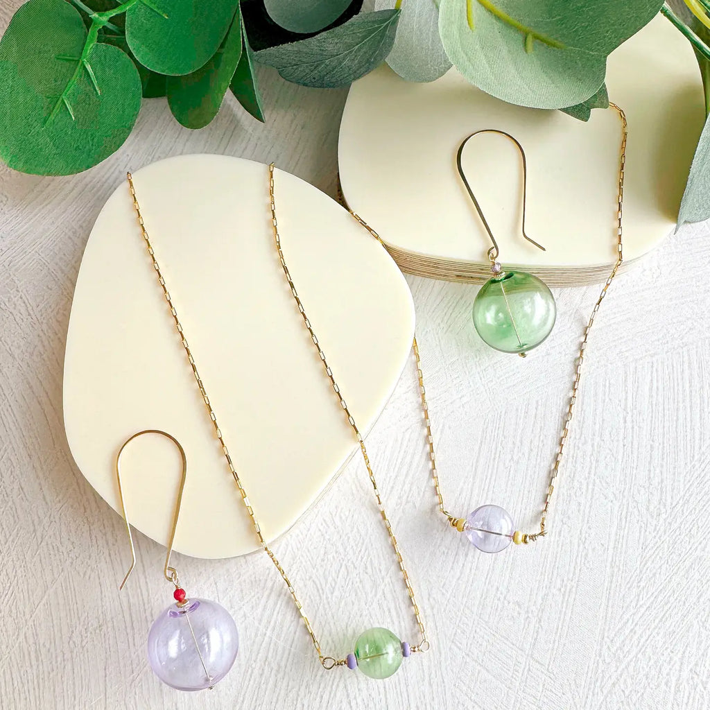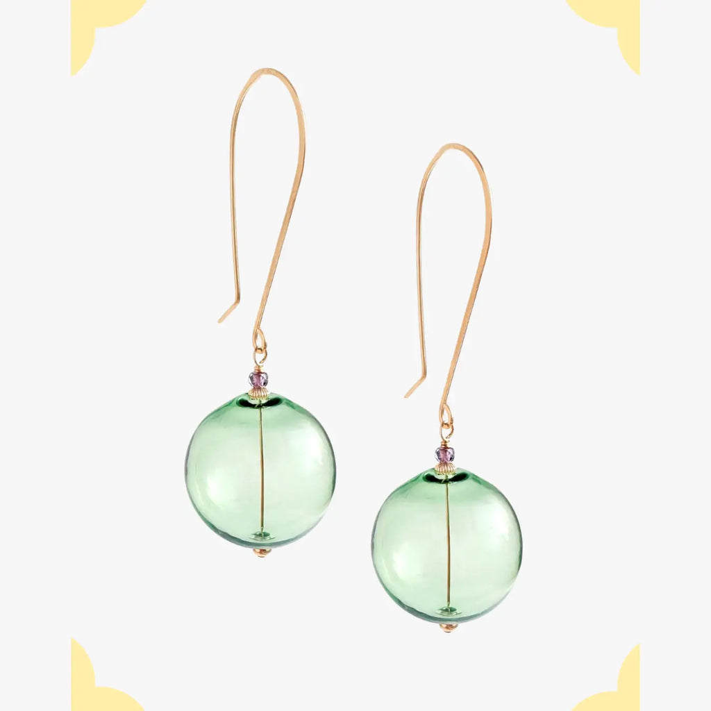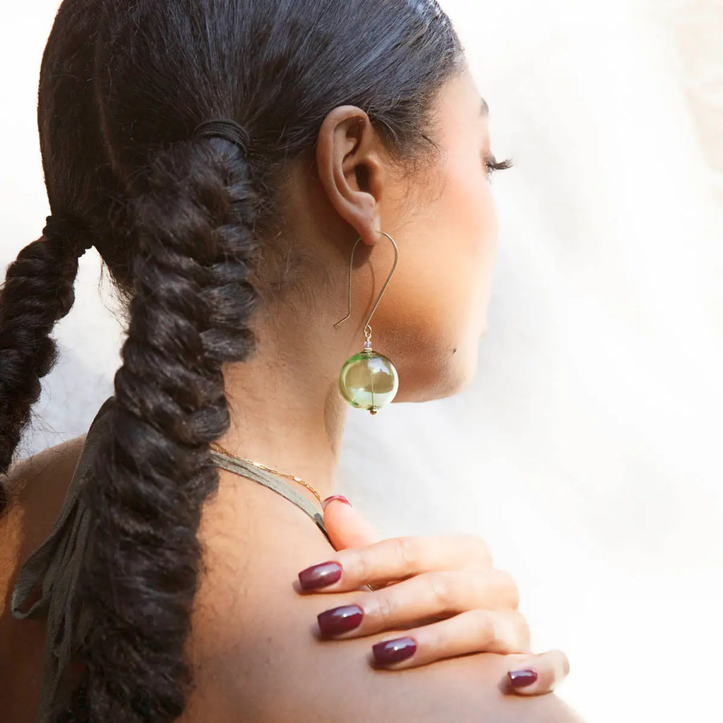 These eye-catching statement earrings feature vibrant bubble glass beads that create beautiful movement and color with every turn. Handcrafted in our Nashville studio, each pair combines bold artistic impact with surprisingly lightweight comfort for all-day wear.