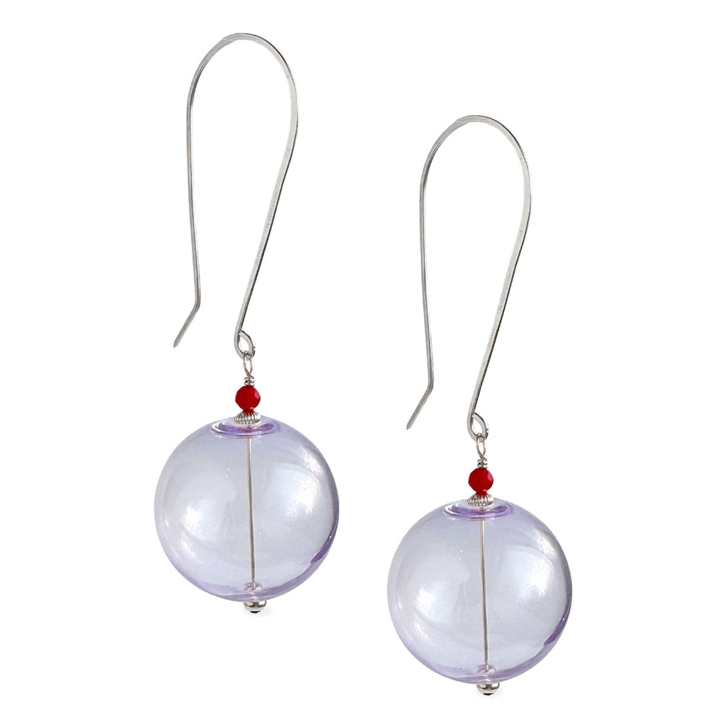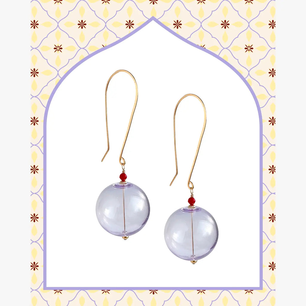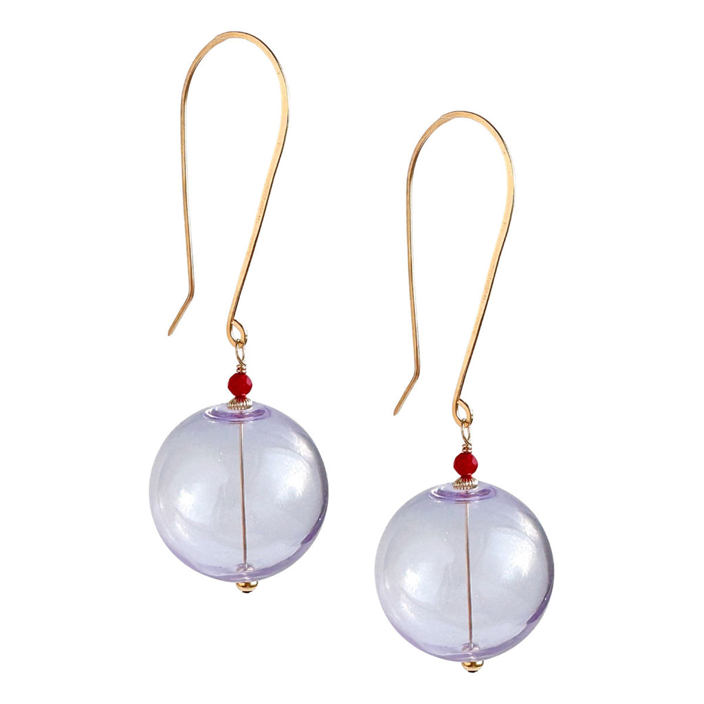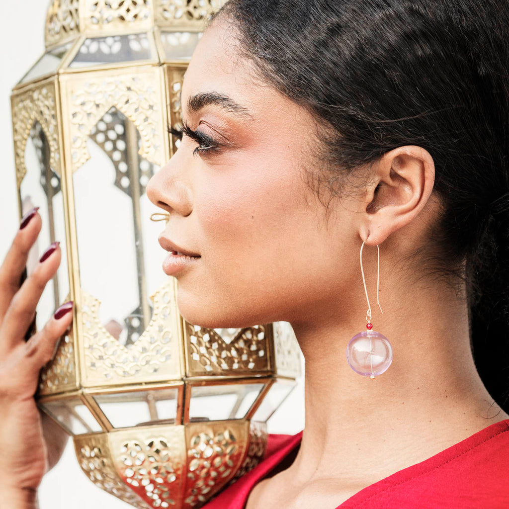 These eye-catching statement earrings feature vibrant bubble glass beads that create beautiful movement and color with every turn. Handcrafted in our Nashville studio, each pair combines bold artistic impact with surprisingly lightweight comfort for all-day wear.