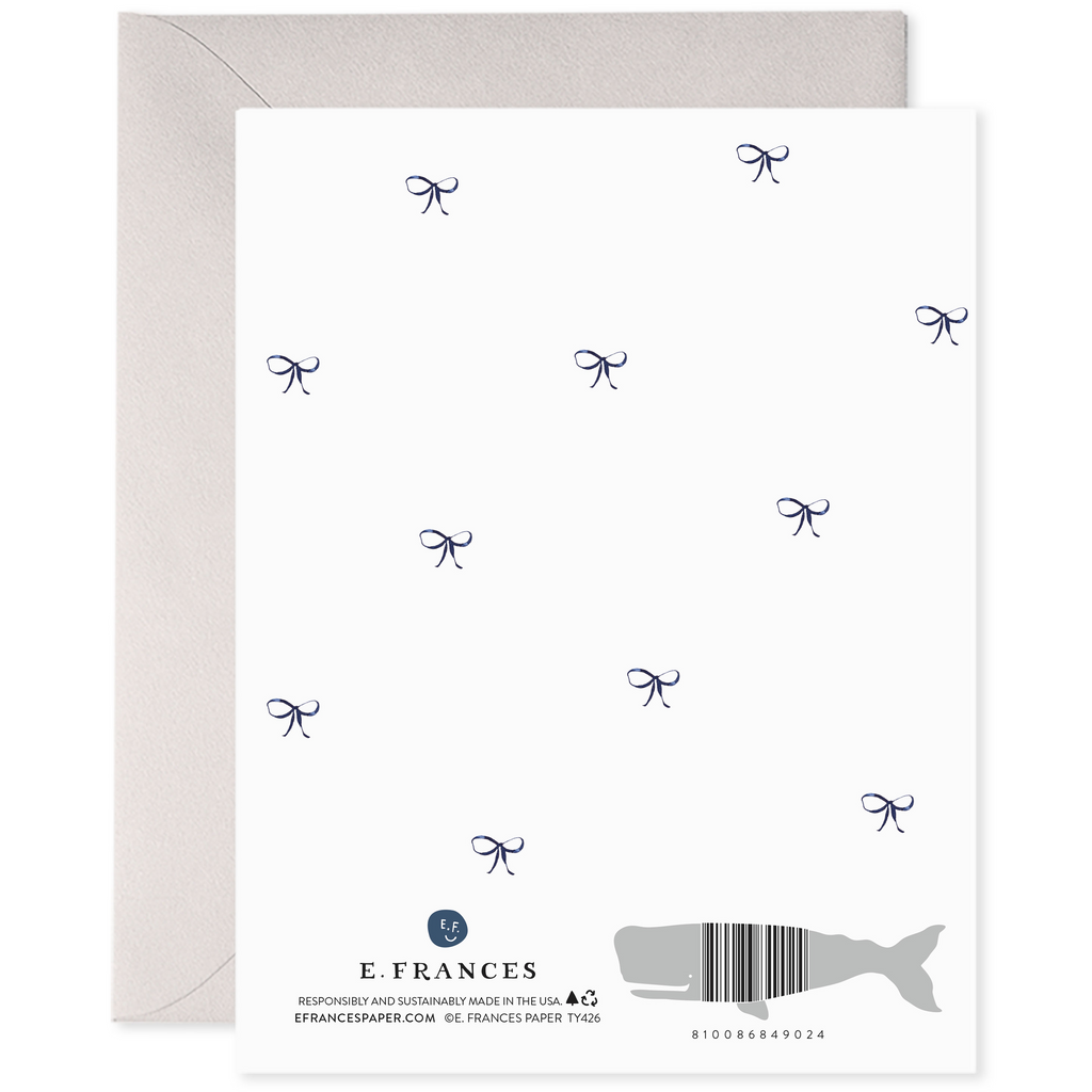 Each E. Frances card begins as an original watercolor painting, is then printed in brilliant color on luxe, heavyweight paper and is finally kissed with gold foil. Made in the USA.