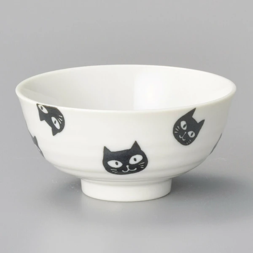 Bring some playful charm to your kitchen with these adorable stoneware bowls from Mitsui Pottery! Featuring a scattered smiling black cat face, these bowls add a little joy to meal or snack time.