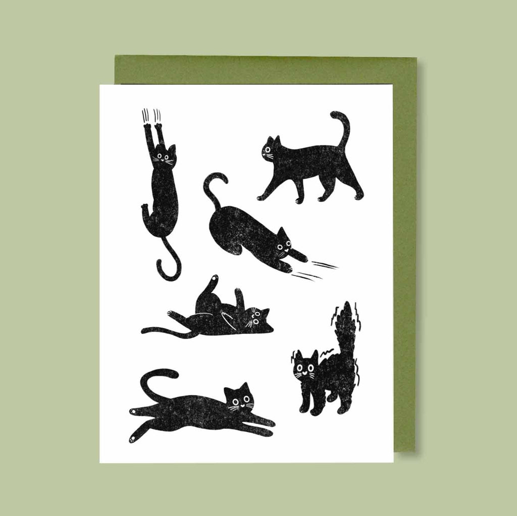 Unleash a purrfectly playful and chaotic energy with our Black Cats Greeting Card. Featuring a charming group of black cats, this greeting card is sure to bring a smile to anyone's face.