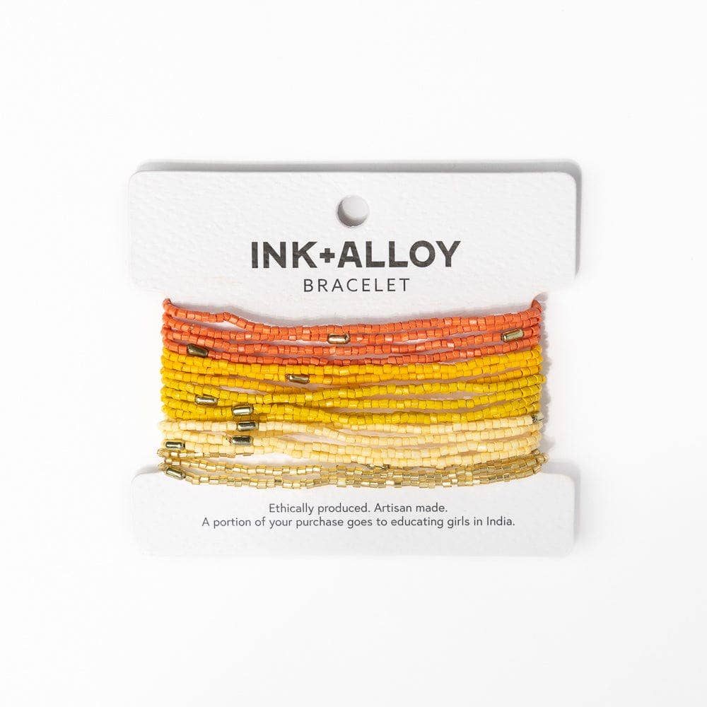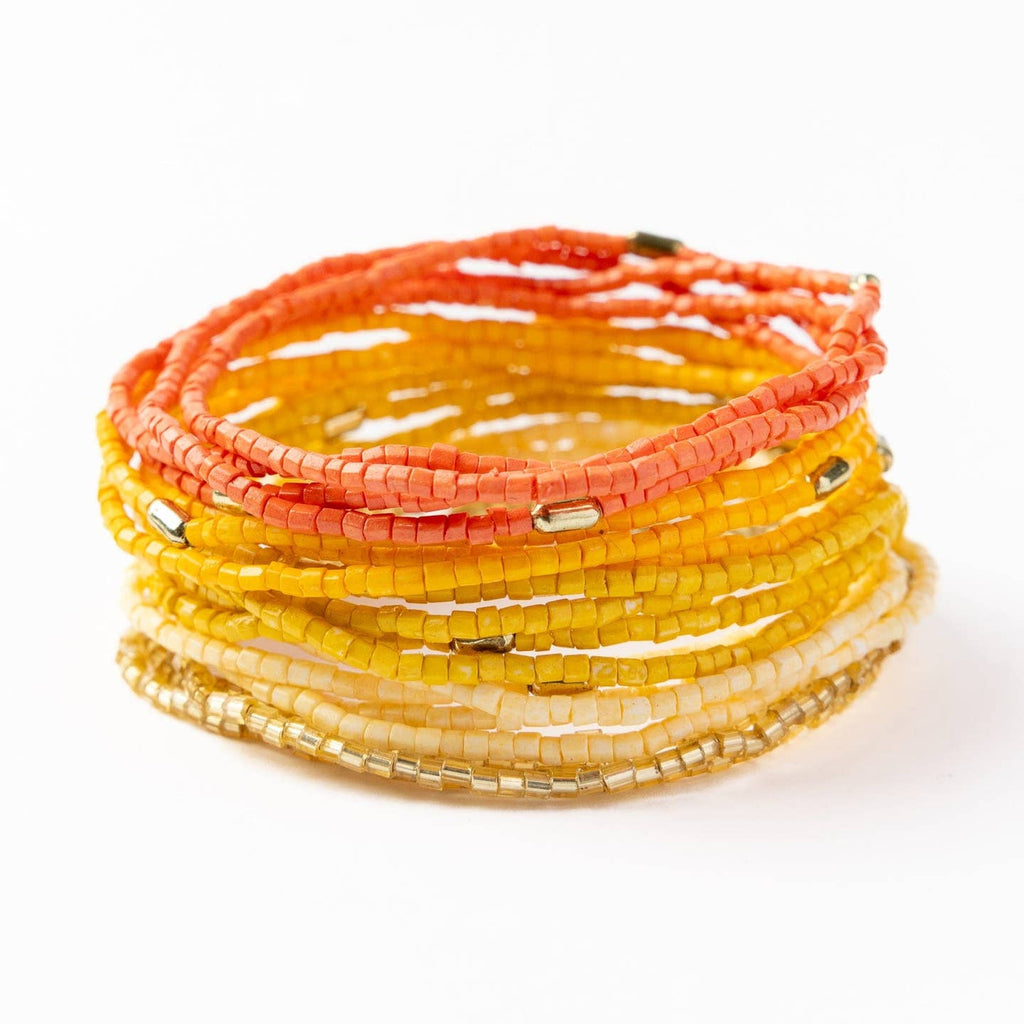 Create a mesmerizing ombre right on your wrist with the Chelsea Luxe Beaded Bracelet Stack! The bracelets are stretchy and boast delicate glass beads in yellow, orange, coral, and gold; they make for great statement accessories, without the bulk. Mix and match: wear a couple at a time, share them among friends, or wear the whole stack of eighteen!