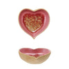 Add a colorful and playful touch to any room with this delightful heart dish! It's perfect for storing your treasured rings or spare change. The crackled glaze finish looks like sparkling broken glass, giving it a really unique and eye-catching texture. The pink glaze has beautiful variations in color.