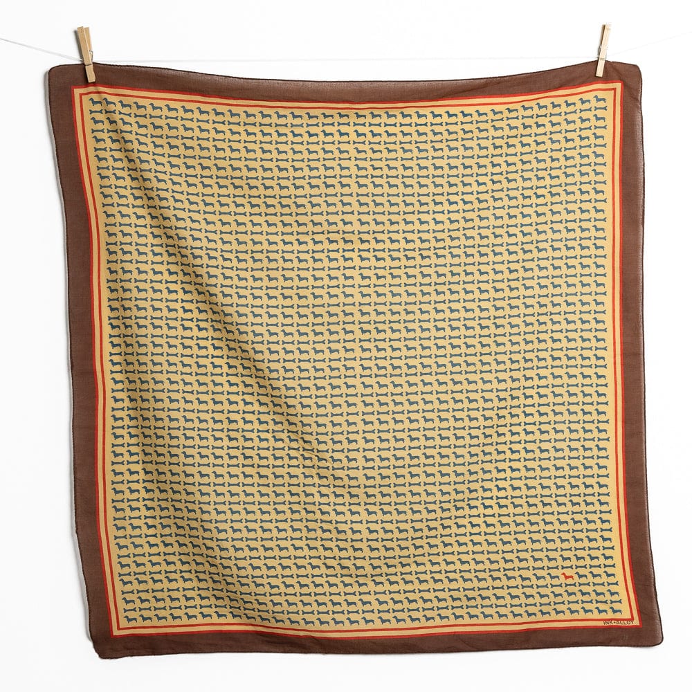 This dachshund and bone scarf will make an adorable addition to any outfit! Use it in your hair, on your bags, as a handkerchief or bandana, and more. Endless possibilities await!