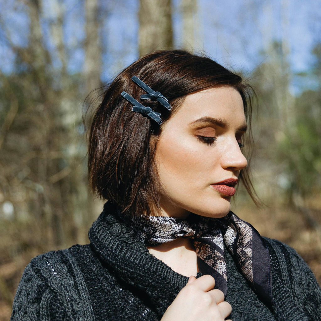 Add a timeless, classy touch to your outfit with these velvet ribbon hair clips. Featuring a pair of complementary colors-- mint blue and orchid purple-- these clips are the perfect addition to any hairstyle.