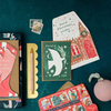 A white dove spreads its wings, swooping across a starry sky carrying an olive branch in its beak, bringing peace and love to holiday revellers. These mini cards are the perfect size to accompany smaller gifts under the tree.