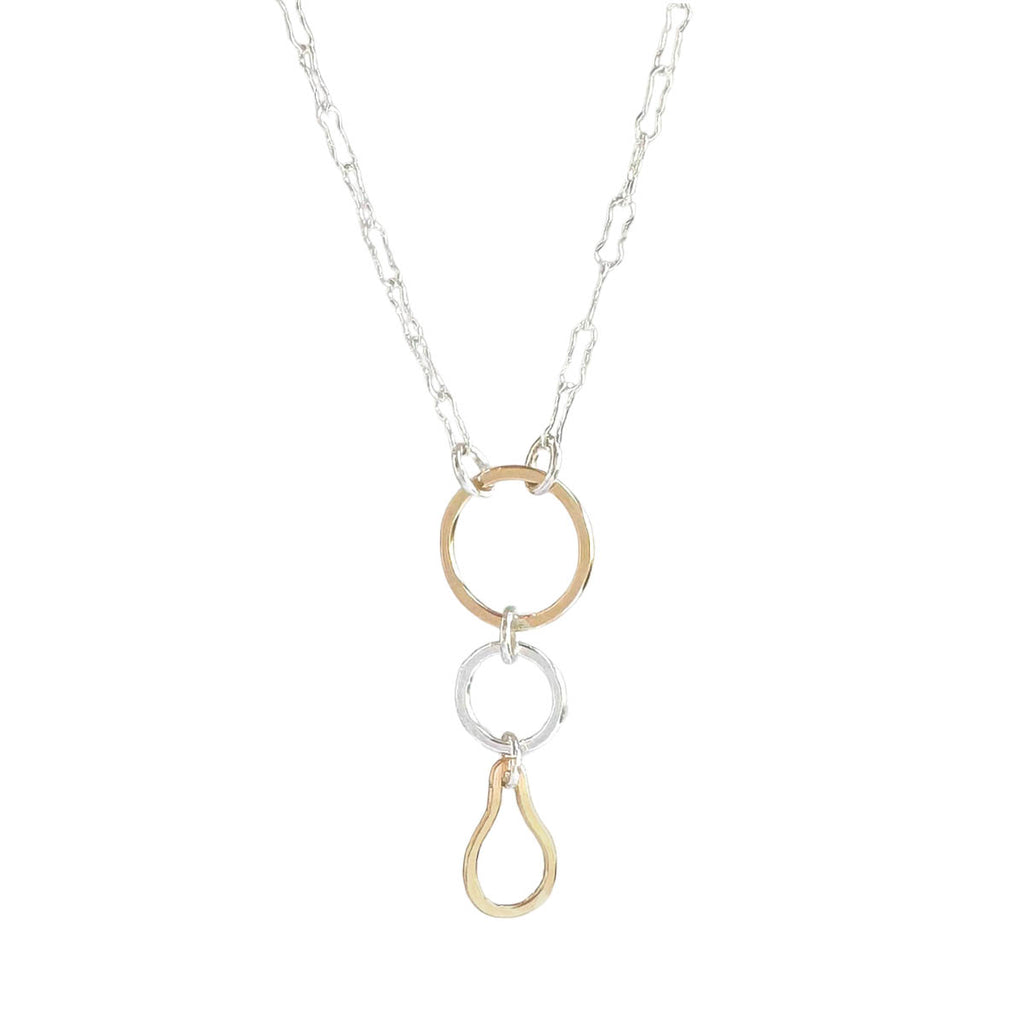 Petite circles meet a golden teardrop in this dainty mixed metal design. The rounded krinkle chain adds to its Moroccan inspiration.