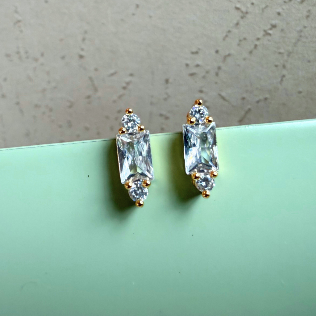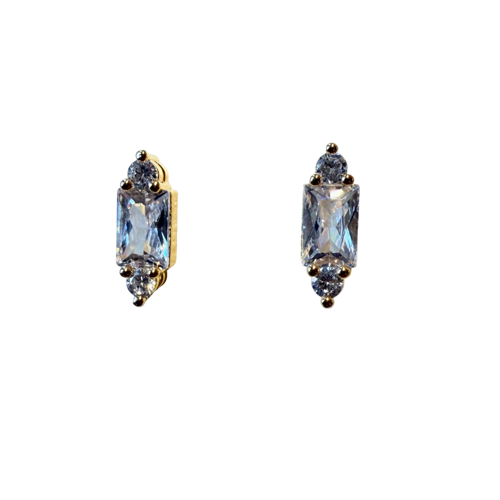 These studs seriously sparkle! With round + princess cut Cubic Zirconia, these earrings are an effortlessly elevated accessory. Classy, timeless, simple, understated, eye-catching, fit for a queen.