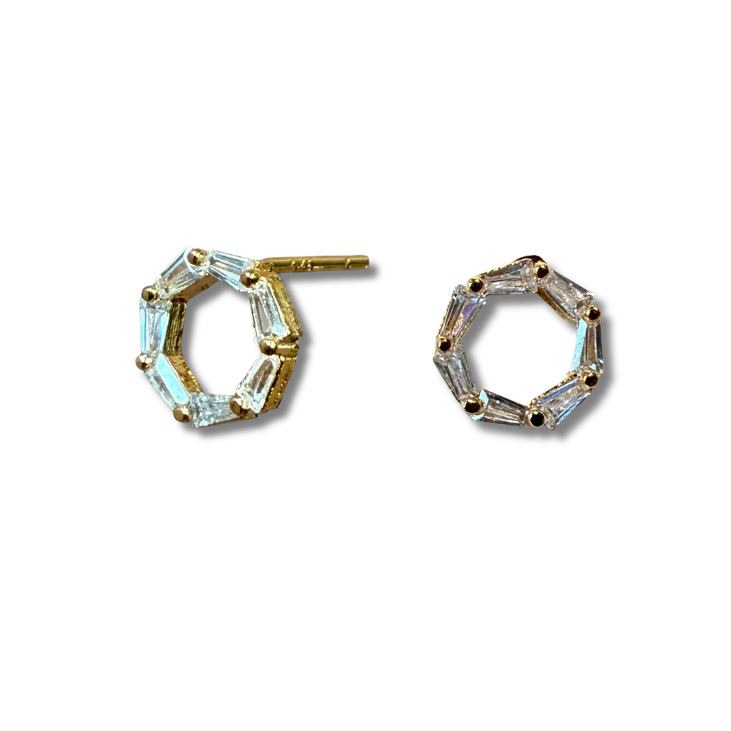 These Eternity Stud Earrings featuring sparkling Cubic Zirconia with a gold finish are an elevated and timeless variation of a classic stud earring.
