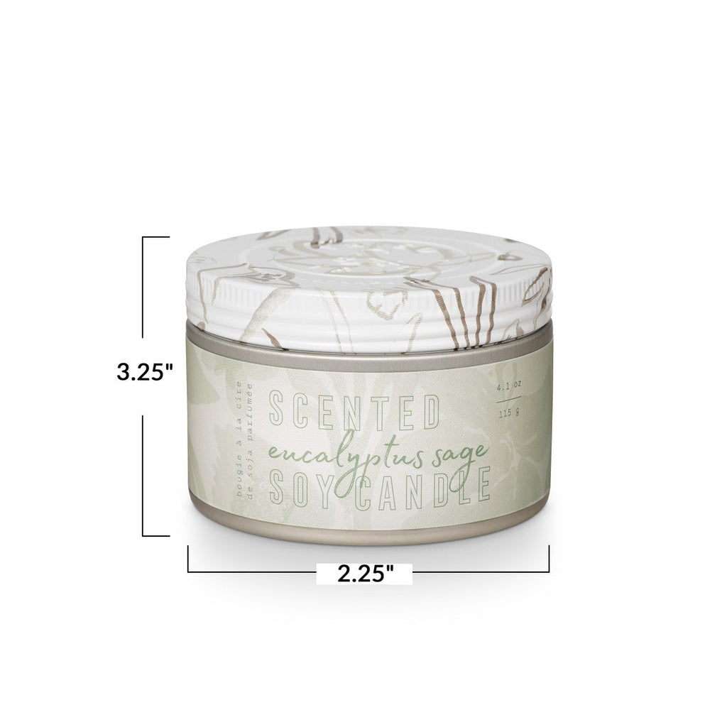 Eucaluptus & Sage is a fresh and familiar scent for every room in the house. Great for gifting, the small tin with colored wax and a decorative wrap label makes a perfect addition to seasonal home decor. This scent features notes of silver sage, rosemary, and clove bud.