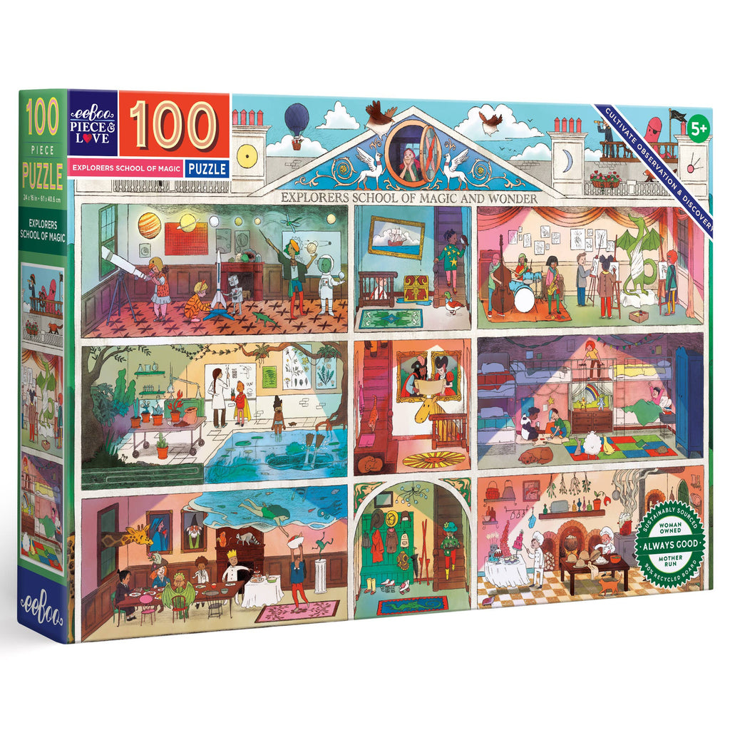 Artist Jennifer Potter conjures a fantastical, magical school for the curious and intrepid, featuring rooms populated with discovery, music, and invention, among other activities. Children will practice patience and imagination as they complete the image and discover its many stories.