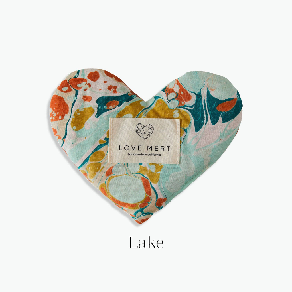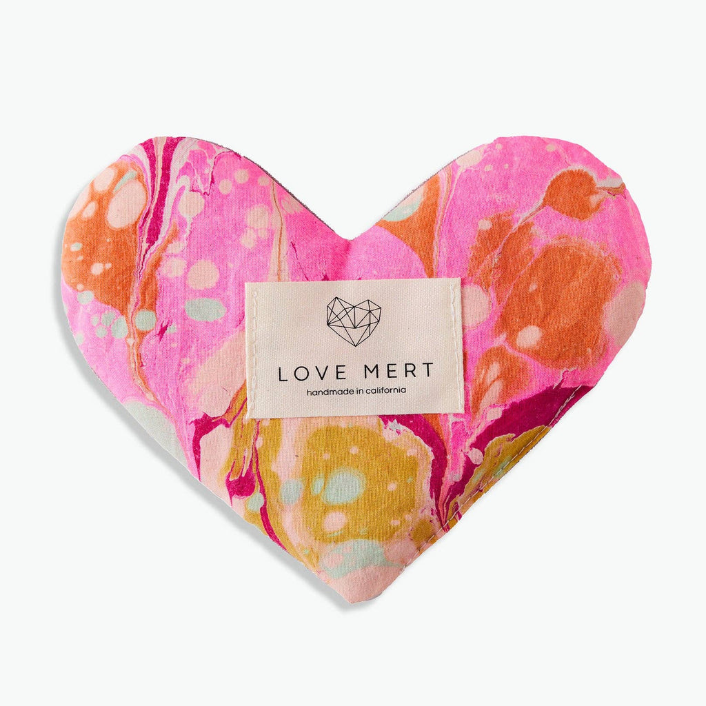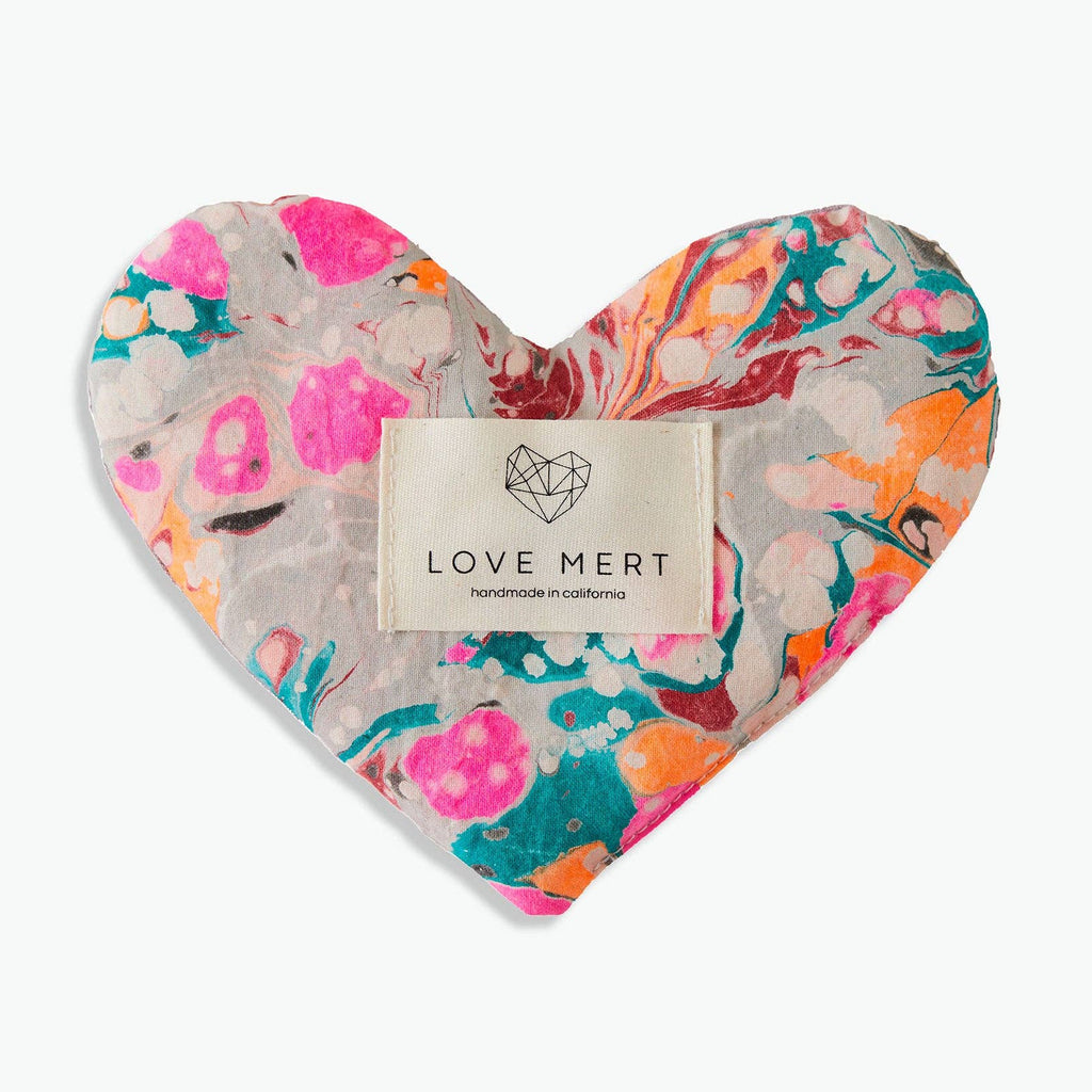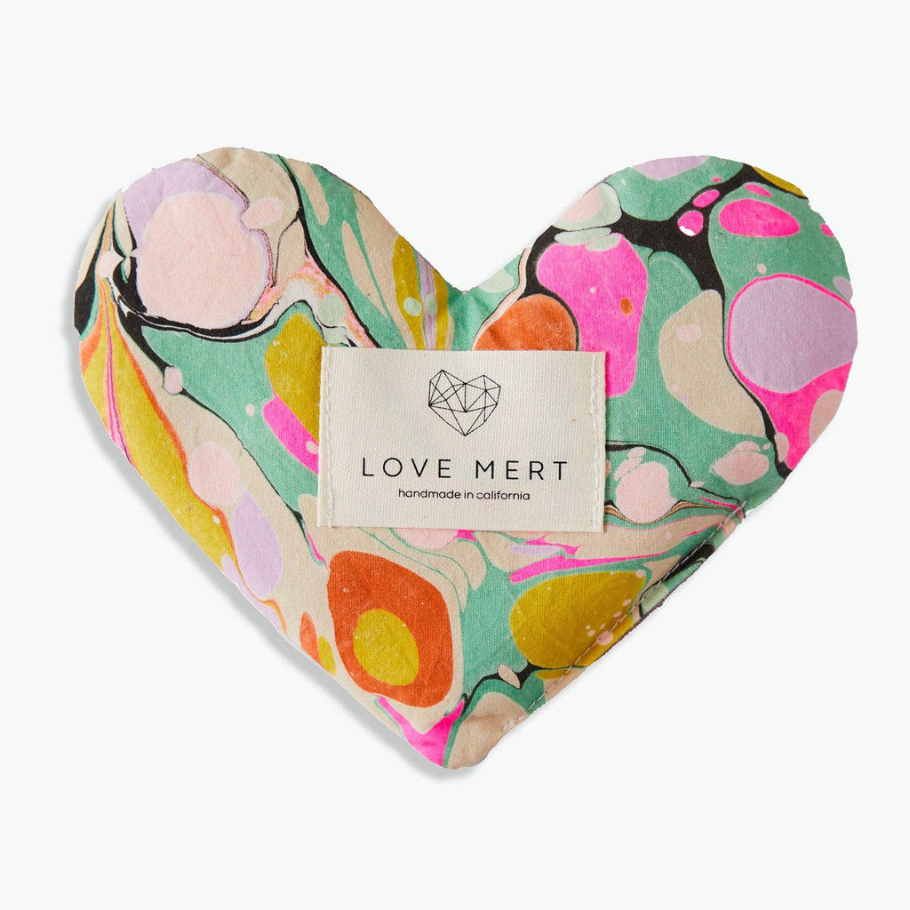These eye love pillows in heart shapes hug your face perfectly. They are each made of hand-marbled organic cotton with a raw silk backing, and filled with organic flaxseed and lavender. You can heat them for 30 seconds in a microwave for comfort or chill them in the freezer for a lovely cooling effect. It's the perfect way to give love to yourself or a loved one!