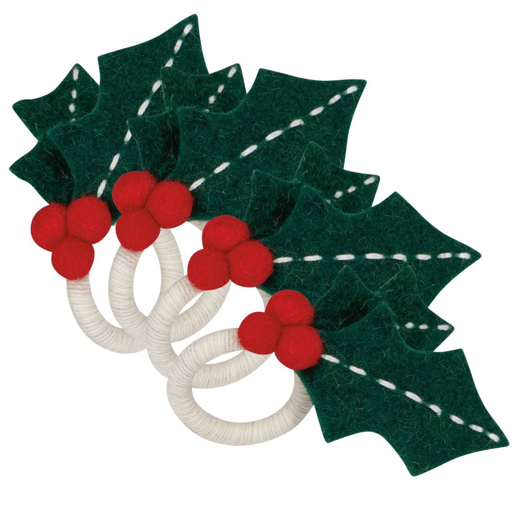Our handcrafted Felted Wool Holiday Napkin Rings add a soft touch of seasonal charm to the table. Pick from a set of four festive birds, holly branches, or poinsettias.