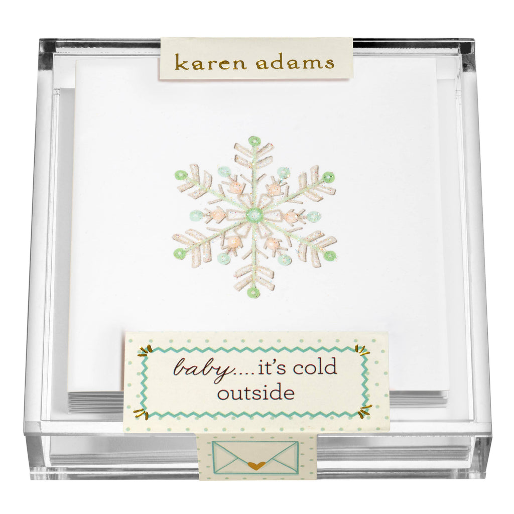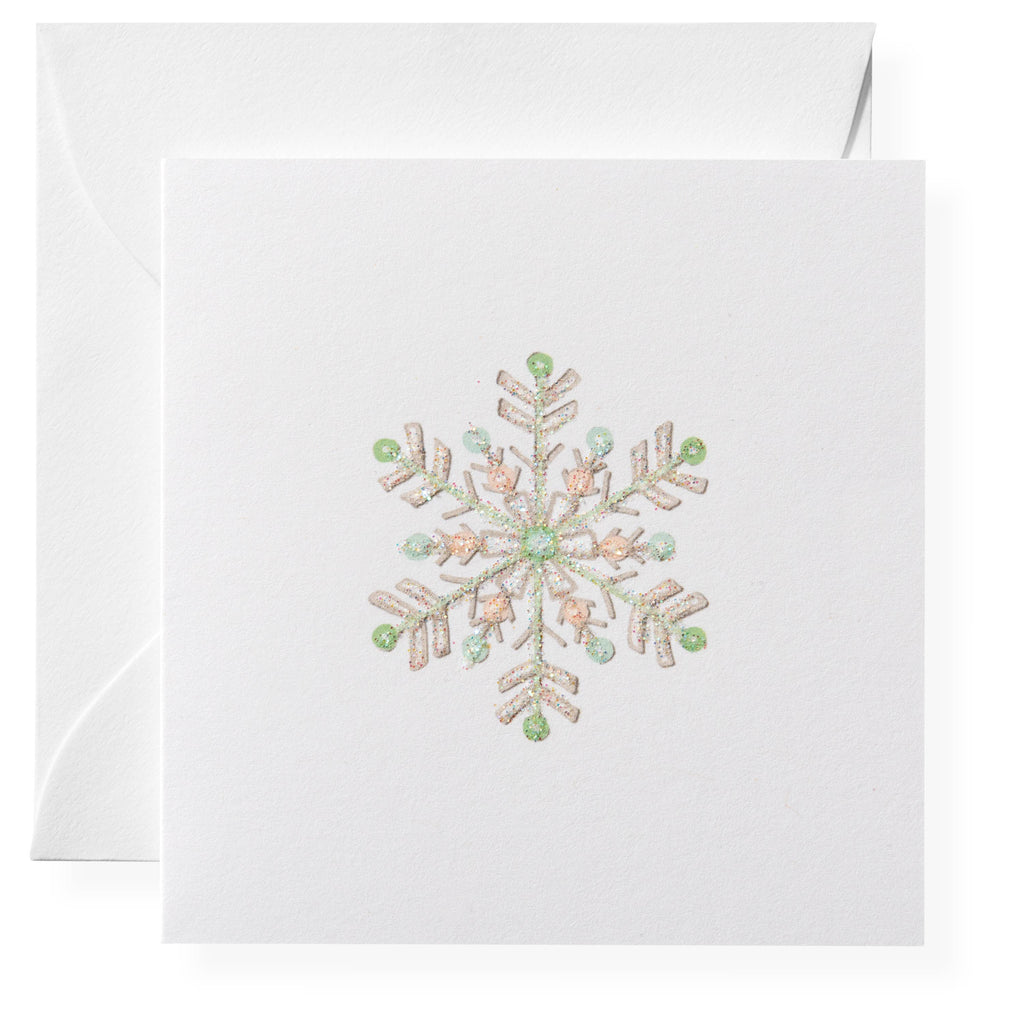 These cards are absolutely adorable! Share warm wishes with this perfectly sweet box of hand-glittered snowflake cards. Book-folded and blank inside, they work great as small cards or gift enclosures.