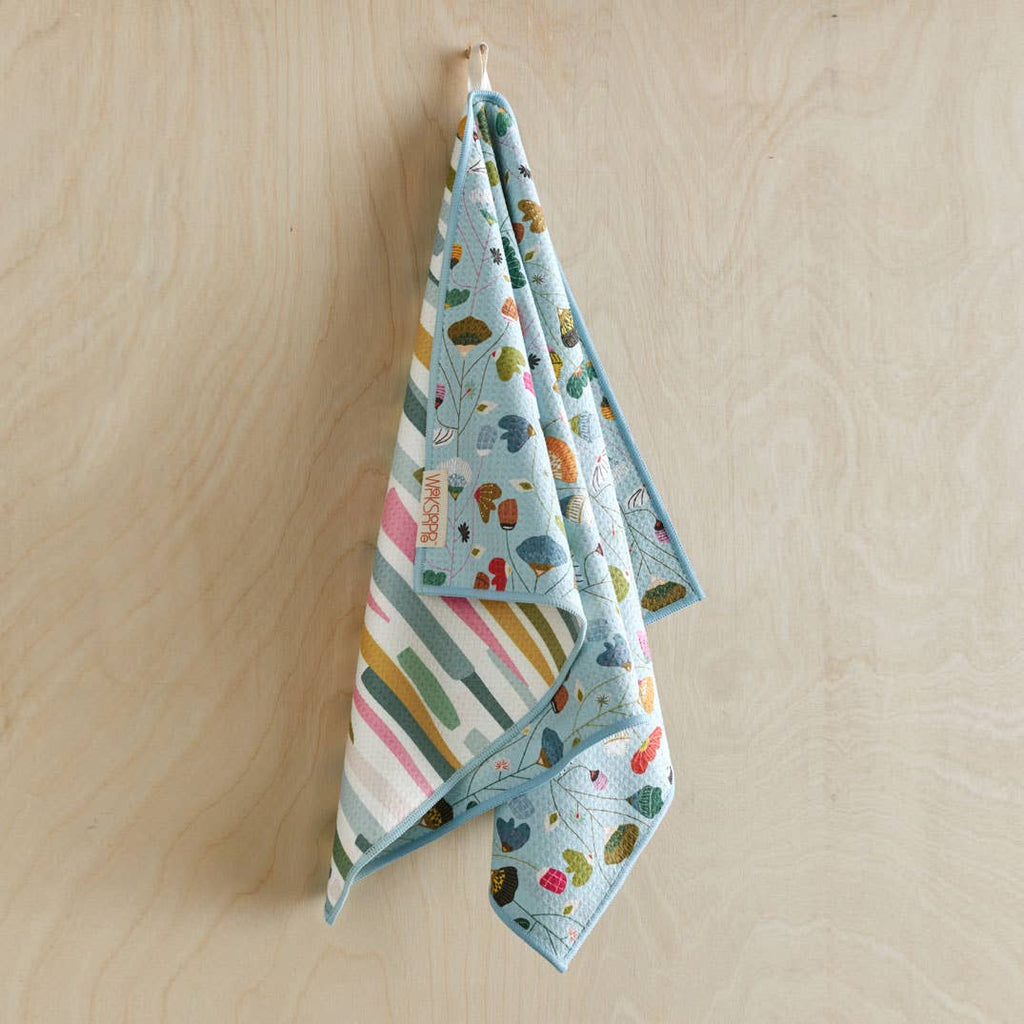 Our customers have spoken and they love these microfiber towels by Werkshoppe! With an original artist-designed print on both sides, these hard working towels are ultra absorbing and fast drying. Use less paper towels and recycle plastic while you're at it - each towel is made from 6 plastic bottles!