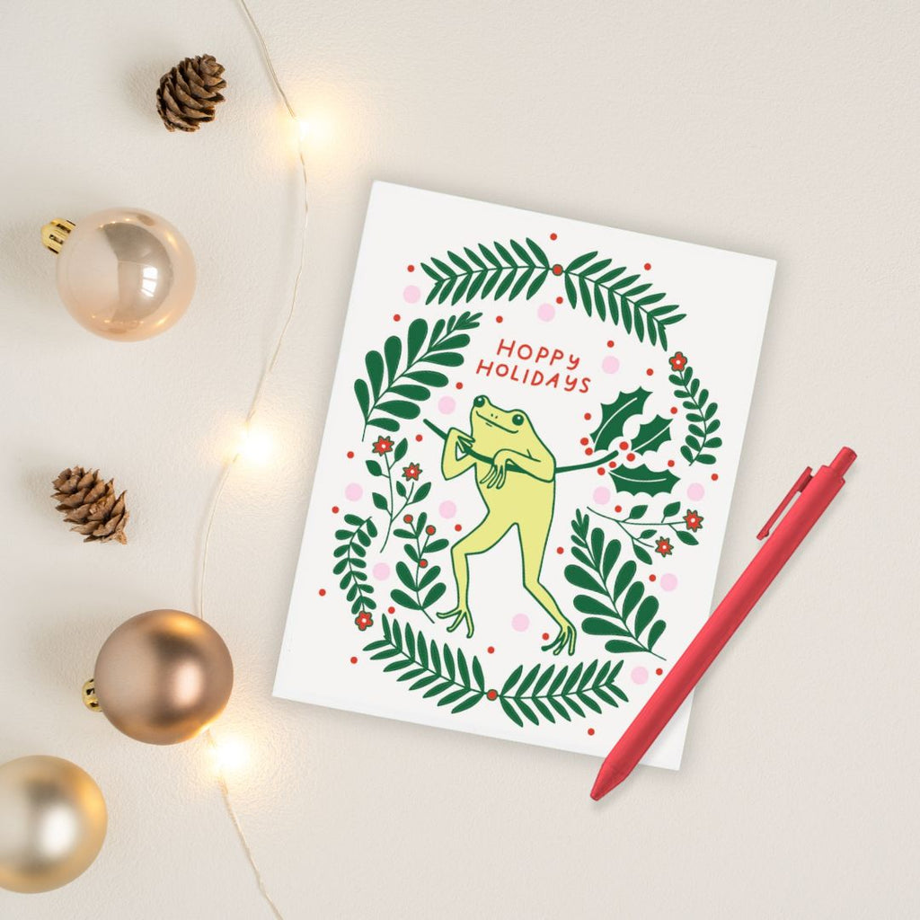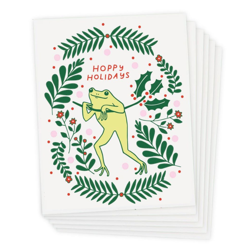 Hoppy Holidays from a tiny frog friend! Coming in a boxed set of 6 cards, you can share seasons greetings with all your pals and loved ones!