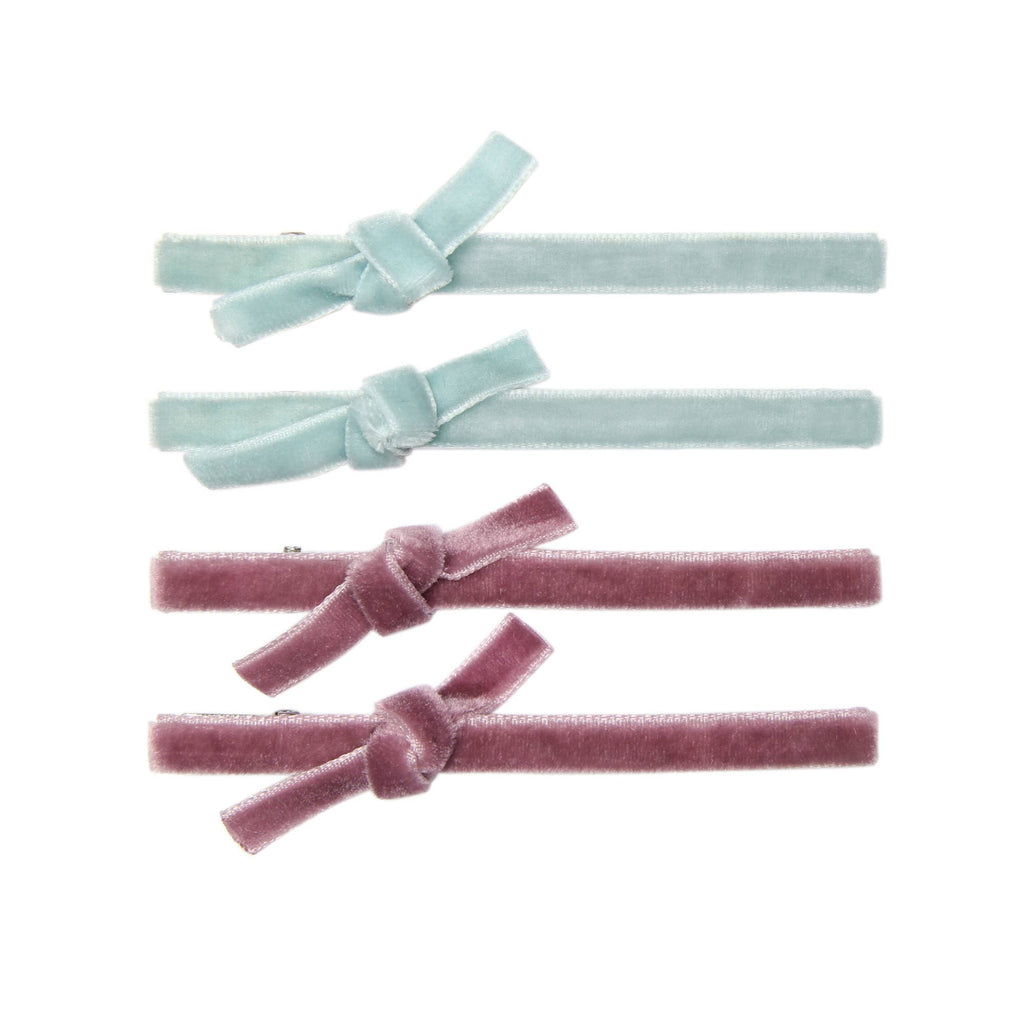 Add a timeless, classy touch to your outfit with these velvet ribbon hair clips. Featuring a pair of complementary colors-- mint blue and orchid purple-- these clips are the perfect addition to any hairstyle.