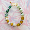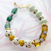 This beautiful and unique handmade beaded bracelet combines a mix of gemstones, Czech glass, pearls, and vintage beads to create a vibrant accessory. Perfect for gift giving or elevating your jewelry stack, this bracelet is eye-catching and one-of-a-kind.