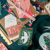 This Gingerbread House Christmas card invites many ""Sweet Christmas wishes"", as the hand-lettered caption reads on the tasty treat's icing-laden rooftop. Decked out with candy canes and other sweets, there is space for additional delicious holiday messages on the blank inside, perfect for adding a personal touch.