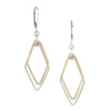Elongated diamond shapes in mixed metals are stacked together for a sophisticated yet playful pair of earrings.
