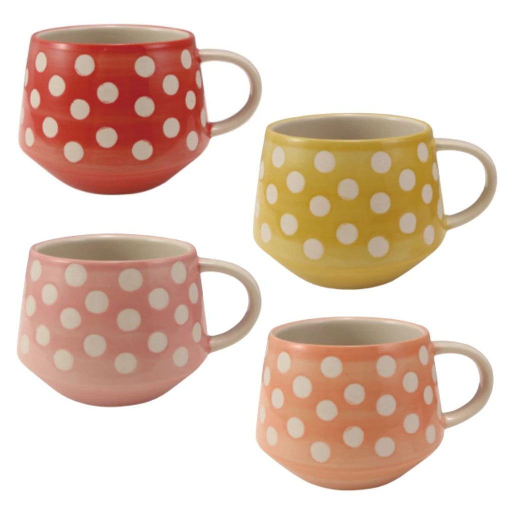Who doesn't love an adorable mug? These Hand-Painted Stoneware Polka Dot mugs are the perfect morning coffee companion. Bring a pinch of joy to your kitchen with these colors. Pick your favorite color and buy it individually or purchase all 4 for a beautiful, vibrant set of mugs!