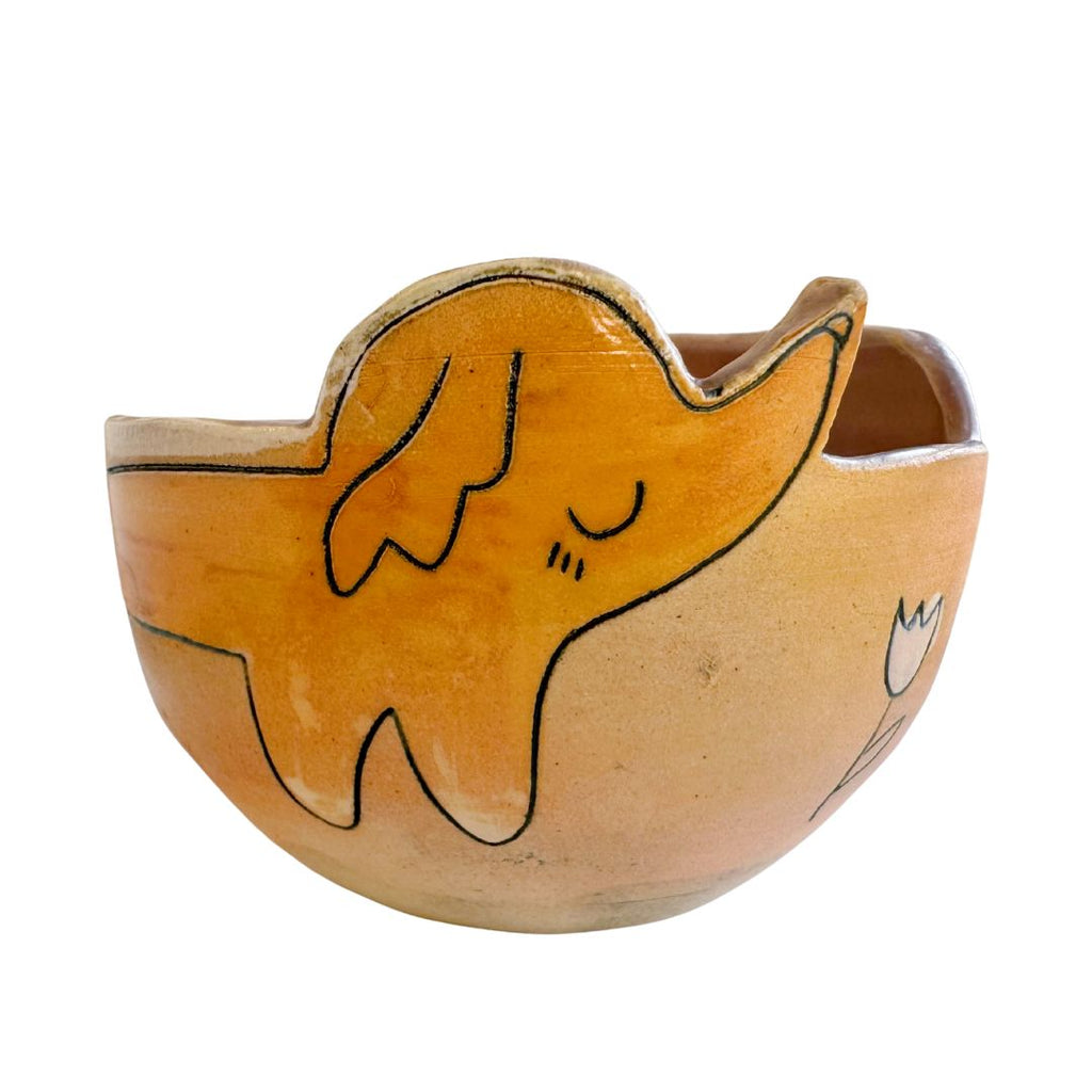 We can't get enough of these quirky handmade pieces by Molly Makes Critters. Each cup is one-of-a-kind and truly a work of art. This happy dachshund wraps all the way around the bowl, ready to hold your trinkets.