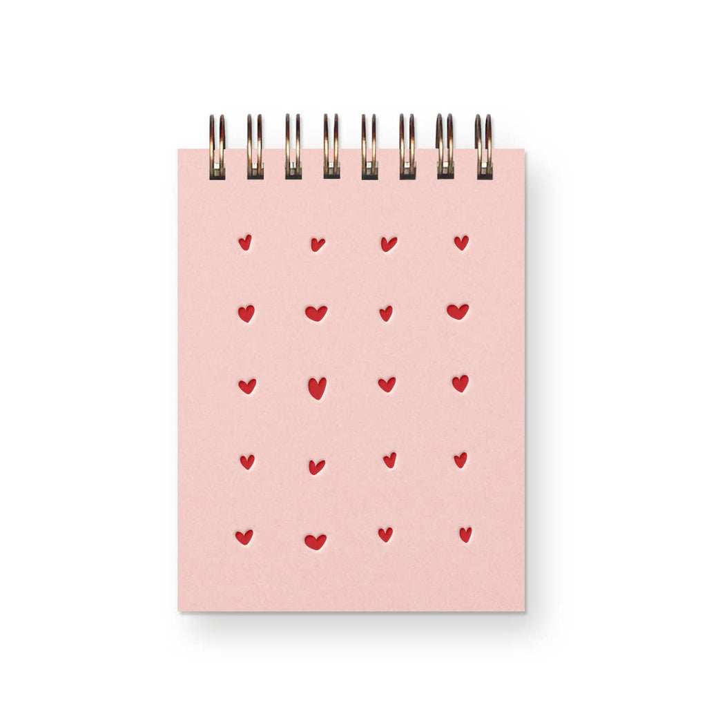 A cherished pick for Valentine's Day gifting! The perfect mini journal to jot down notes and ideas! Letterpress printed hearts dance on the cover and blank inside pages allow room for notes, lists, doodles, and more!
