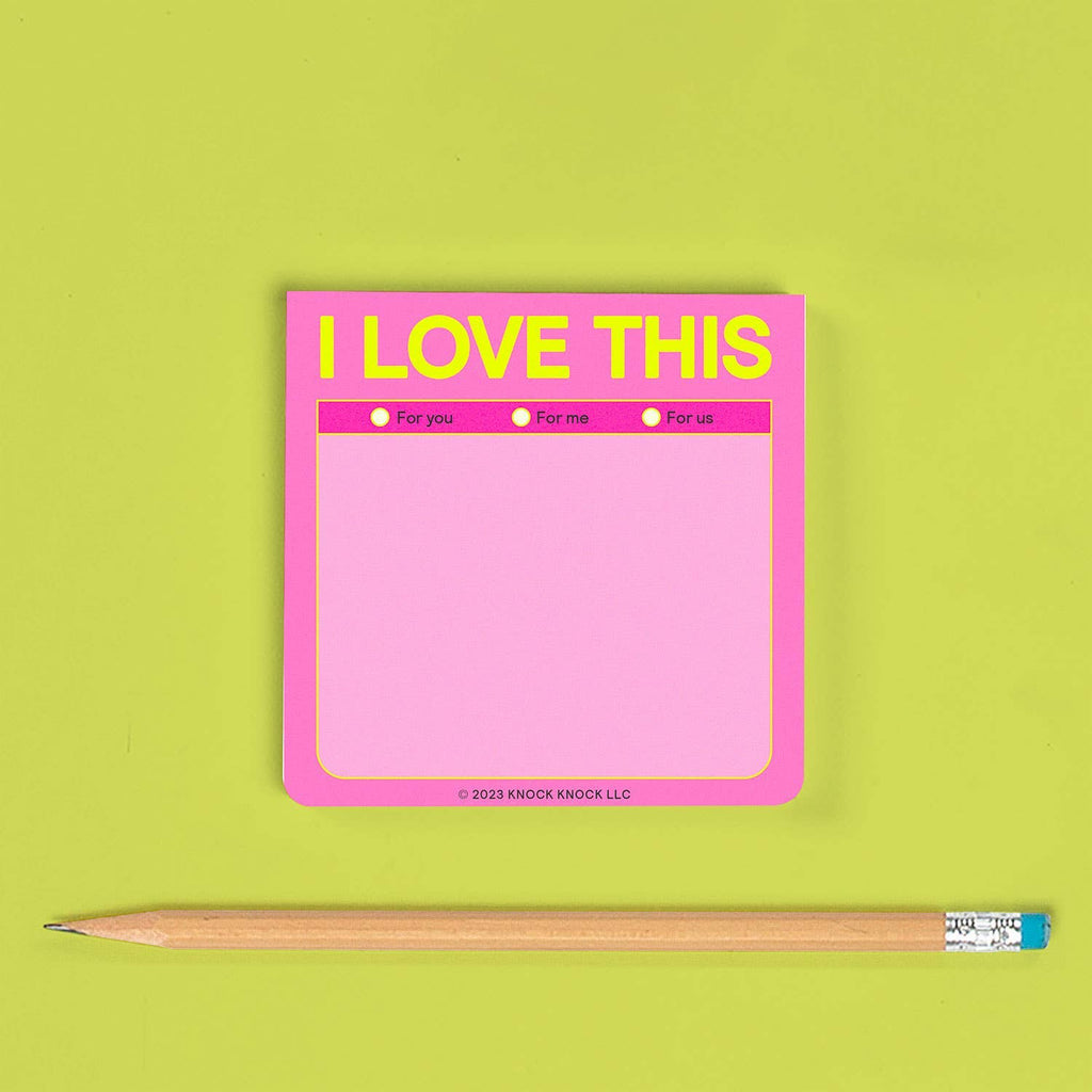 Use these colorful sticky notes to say "I love this," write love notes, or simply jot your to-do list! These Knock Knock sticky pads are down for whatever.