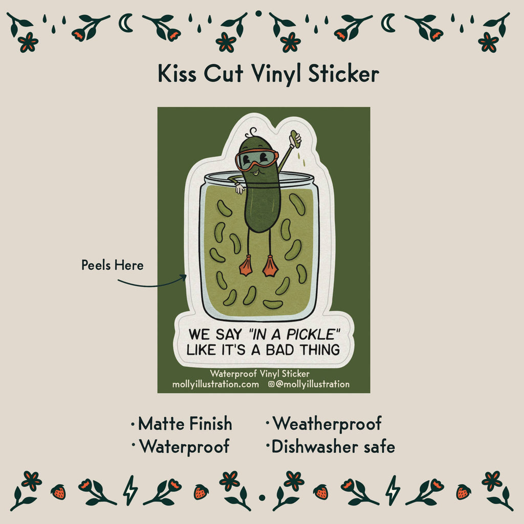 In a Pickle Illustrated Waterproof Vinyl Sticker