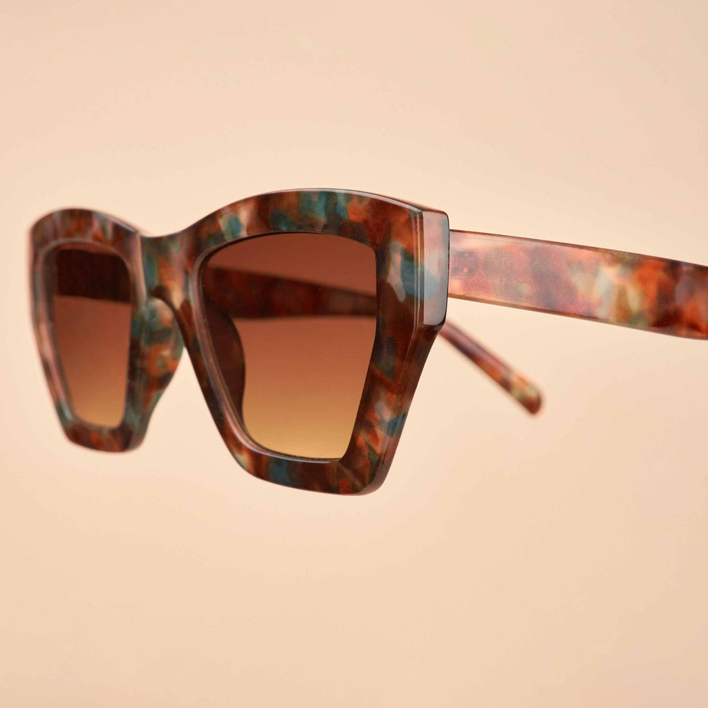 Embrace your edgy side with the Arwen Sunglasses from Powder. With a chunky, angular frame in a tortoise shell pattern featuring ocean-tone accents, these sunglasses are perfect for effortlessly elevating any look.