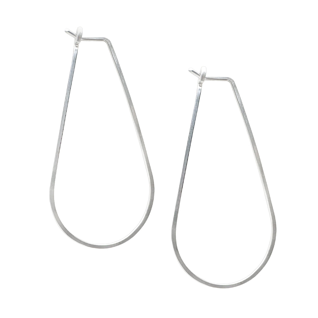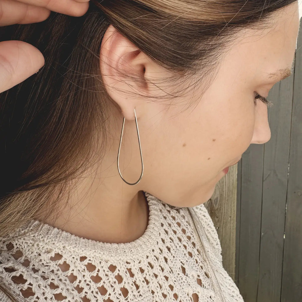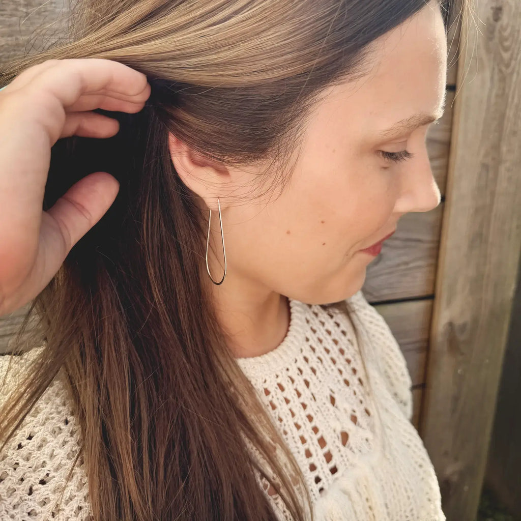A single piece of wire is hand shaped and hammered into a long teardrop.