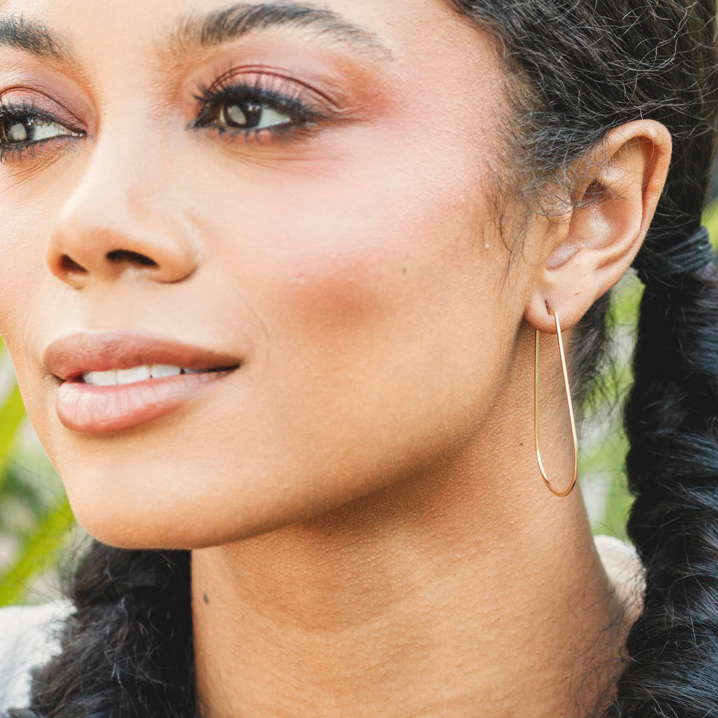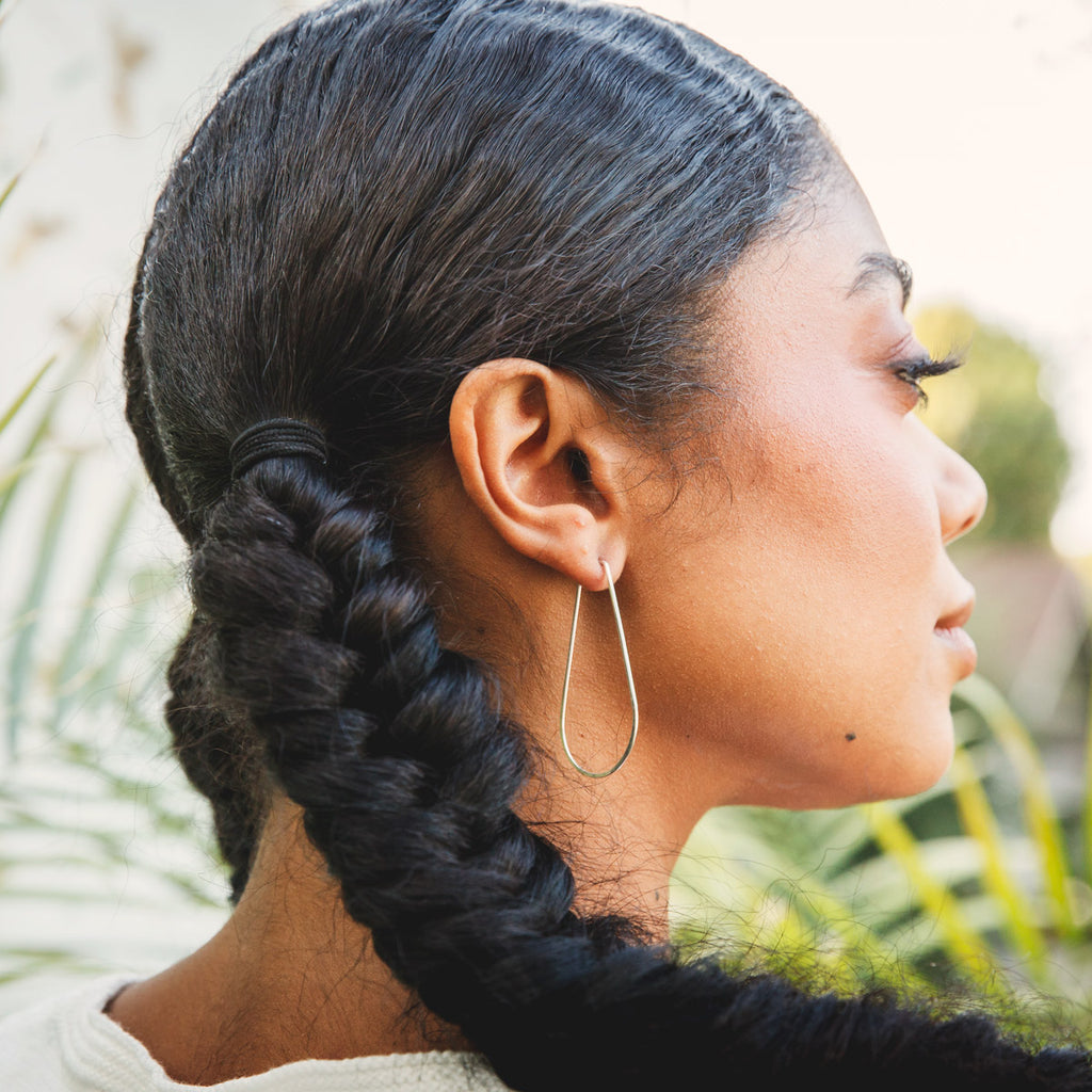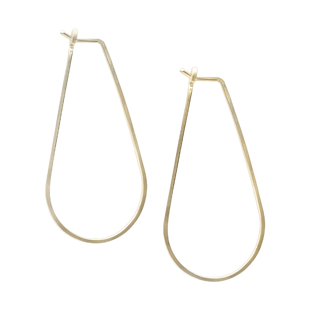 A single piece of wire is hand shaped and hammered into a long teardrop.