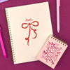 A sweet space for your thoughts, lists, and love notes! This lined journal features a French vanilla cover with a hand-drawn bow letterpressed in red ink, creating a soft, charming keepsake for everyday writing or heartfelt moments.