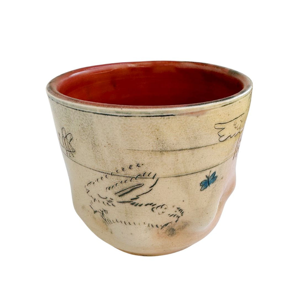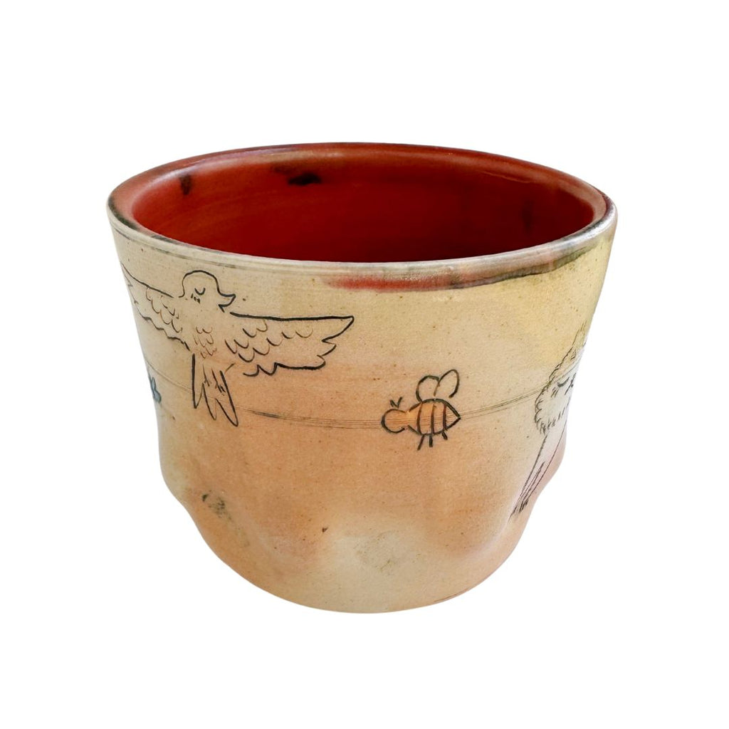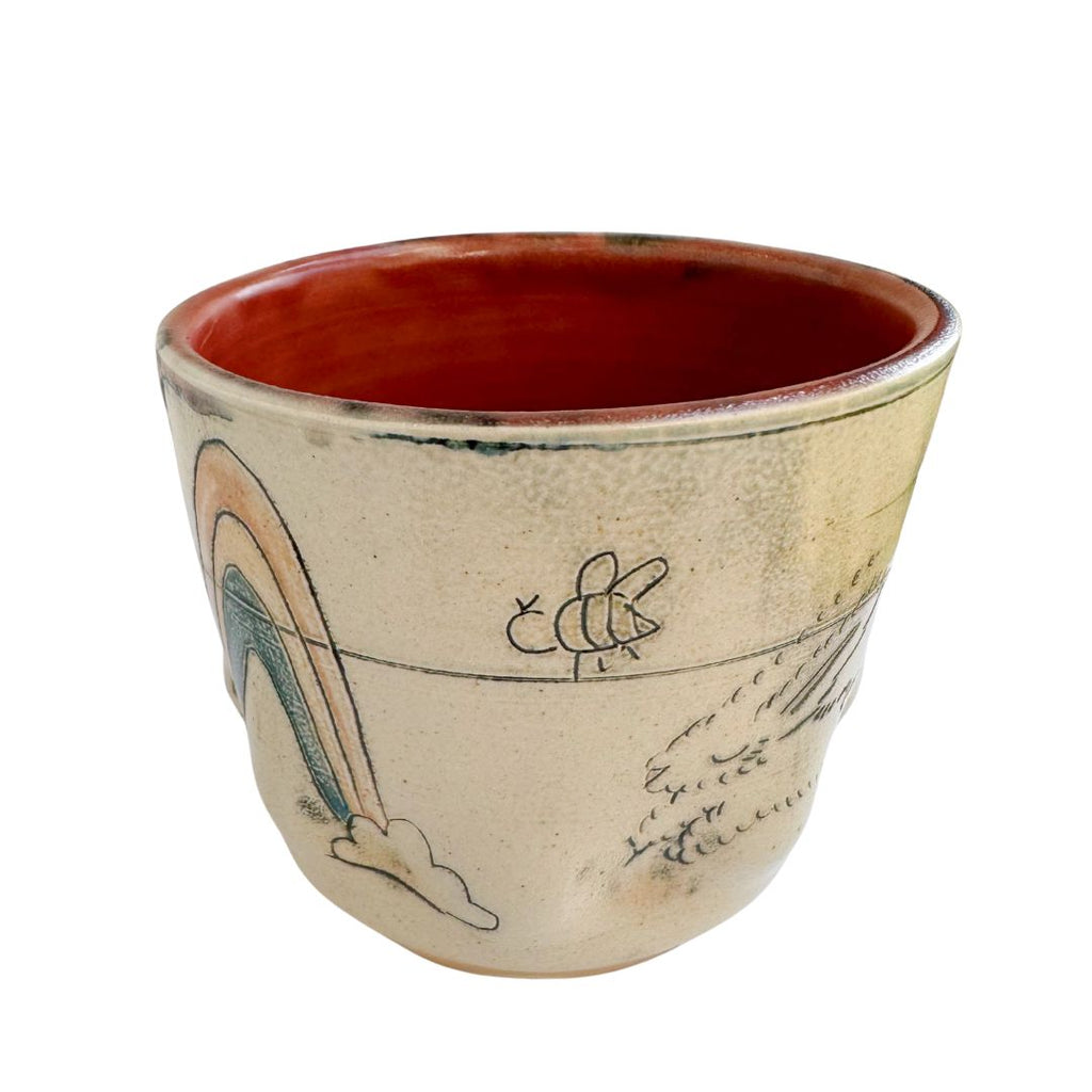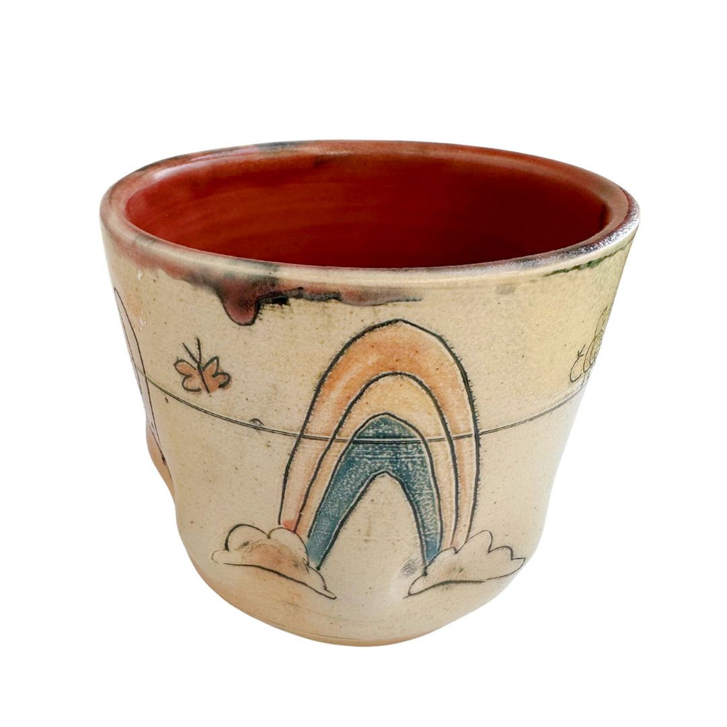 We can't get enough of these quirky handmade pieces by Molly Makes Critters. Each cup is one-of-a-kind and truly a work of art. As you turn the cup, you'll see a cat, a rainbow, a bird, a bee, and even a rabbit!