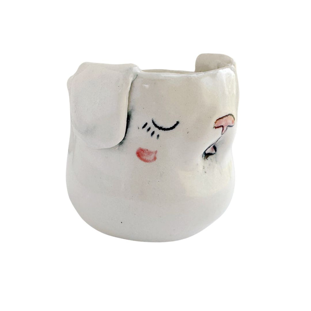 We can't get enough of these quirky handmade pieces by Molly Makes Critters. Each cup is one-of-a-kind and truly a work of art. This sleepy puppy makes a cute catch-all cup or espresso cup!