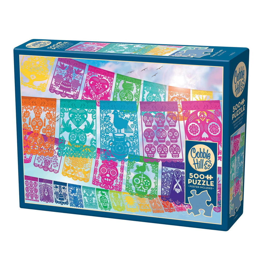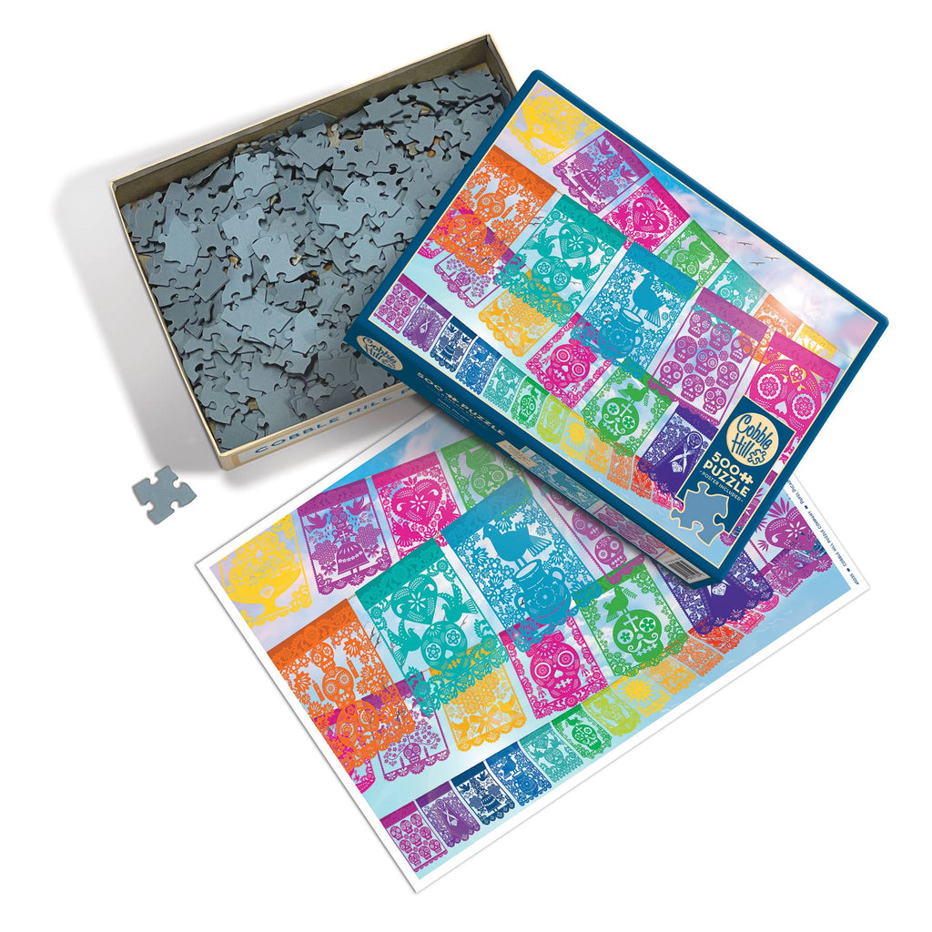 Banners of color and respect hang in the air for the Day of the Dead in this amazing artwork! A vibrant celebration puzzle that honors this beautiful tradition.