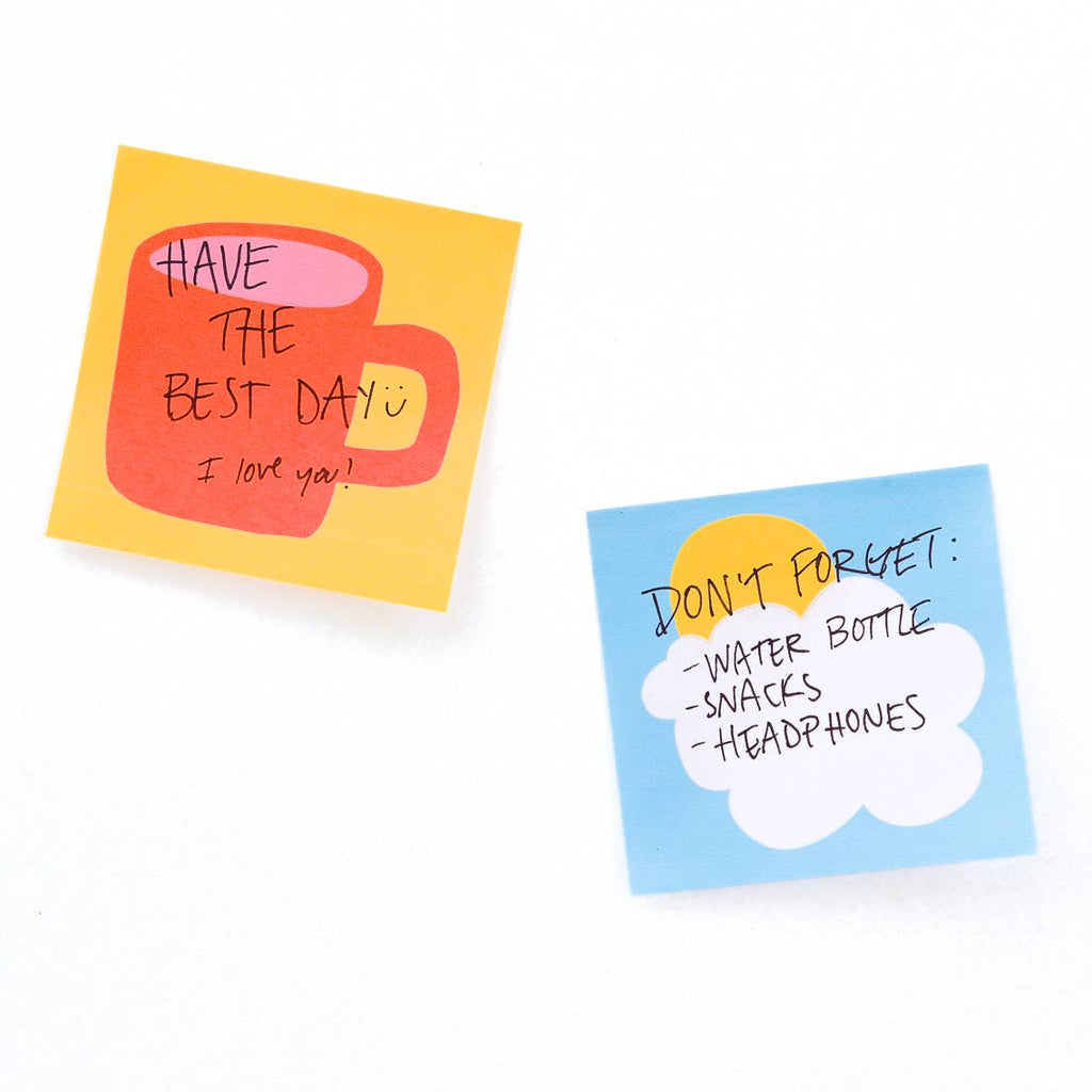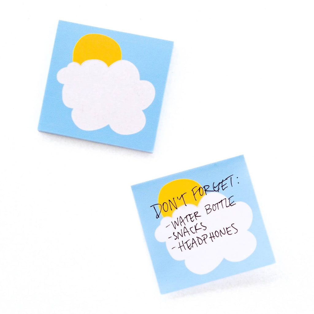 A lil cloud and a lil sun! These sticky notes are perfect for grocery lists, to-do lists, love notes, bookmarks, and more.