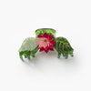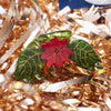 The Poinsettia symbolizes good will and is often associated with Christmas because of its bright green and red color. This claw with its subtle sparkle, hand painted gold detailing, and twinkling stones brings just the right amount of festivity to any look.