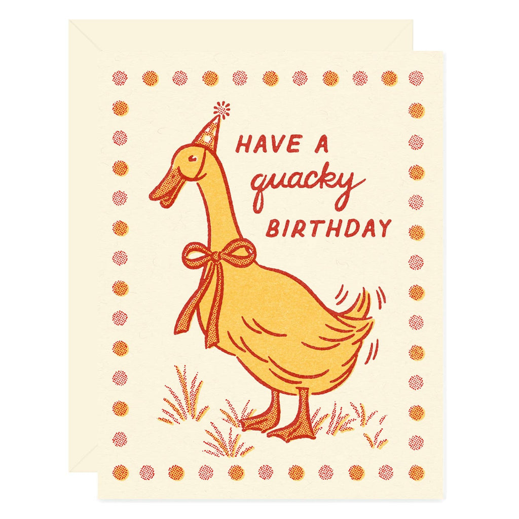 Quacky Duck has been invited to your birthday party, and he brought his own party hat! With butter yellow feathers, a handsome bow, and a birthday wish, he’s sure to make a splash!