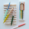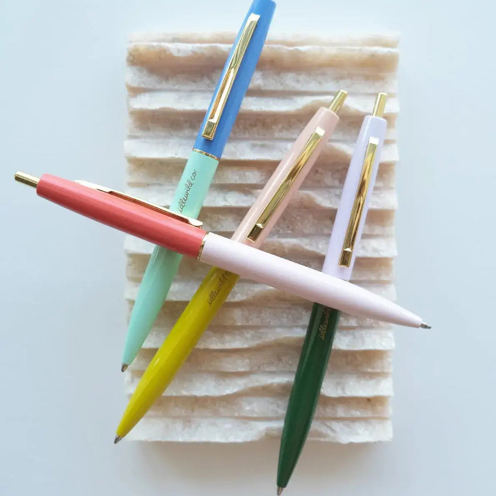 These Retro Rainbow Pens are designed in the classic mid-century style, updated with vibrantly hued duo-toned, scratch-proof barrels – designed to last a lifetime. Best of all, these pen barrels are manufactured in metal - not plastic! This makes a noticeably nicer weight for writing, and is environmentally friendly to boot! Each set of four coordinating pens is packaged in a custom-designed, plastic-free package.