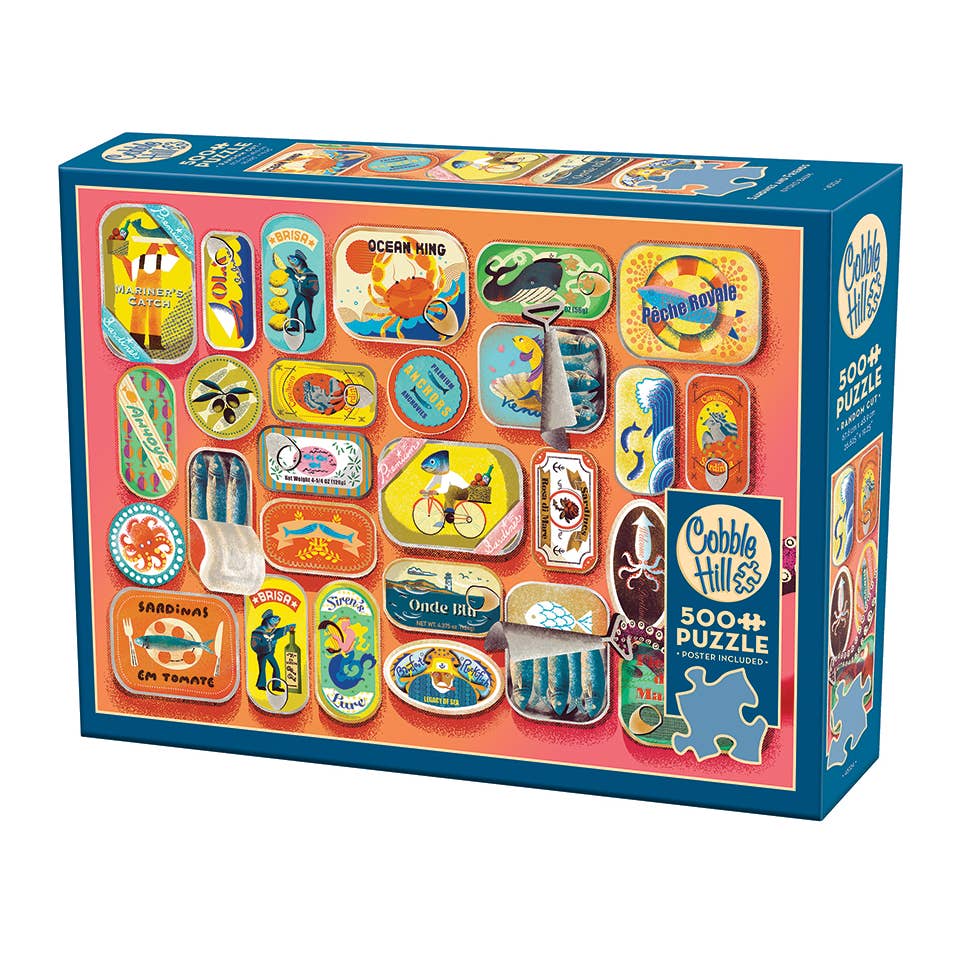 We're thrilled to debut Sardines and Friends! Created by Portland-based artist Yoko Baum, this vibrant puzzle was specially customized for the 2025 Portland Jigsaw Masters tournament. Based on an illustration she originally created for the StarChefs Rising Stars Portland issue, look closely, and you'll even spot a warm "Welcome to Portland" tucked onto one of the quirky tins!