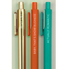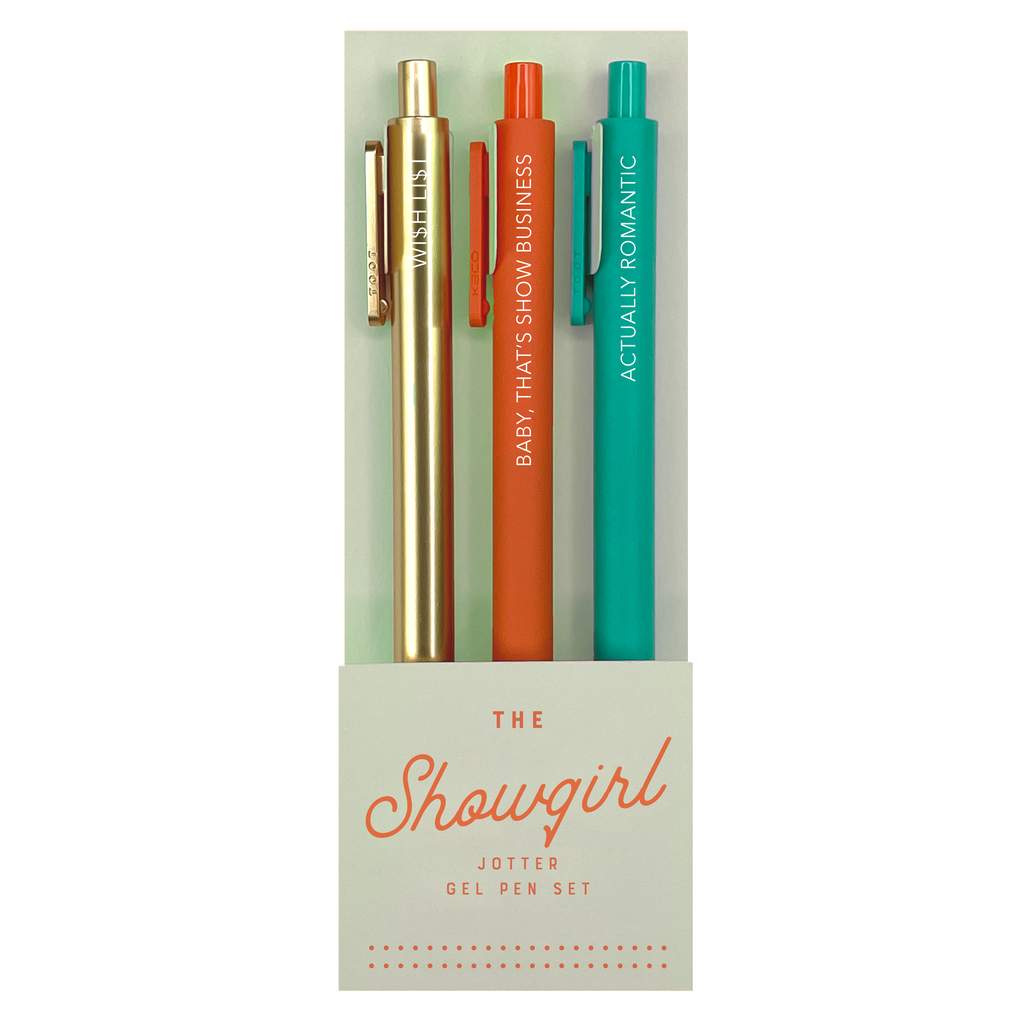 Inspired by sparkle and confidence, this pen set brings a pop of glam to every note! Each sleek gel pen features a bold, fun phrase that captures magic, glitter, and show-stopping energy. Perfect for journaling, lists, or adding a little spotlight to your everyday writing.
