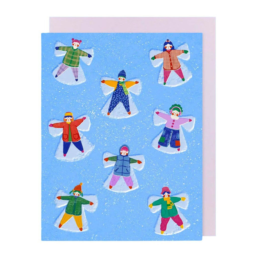 This charming card features little ones crafting their snowy masterpieces, reminding us that life is better when you “wing it” in the snow.