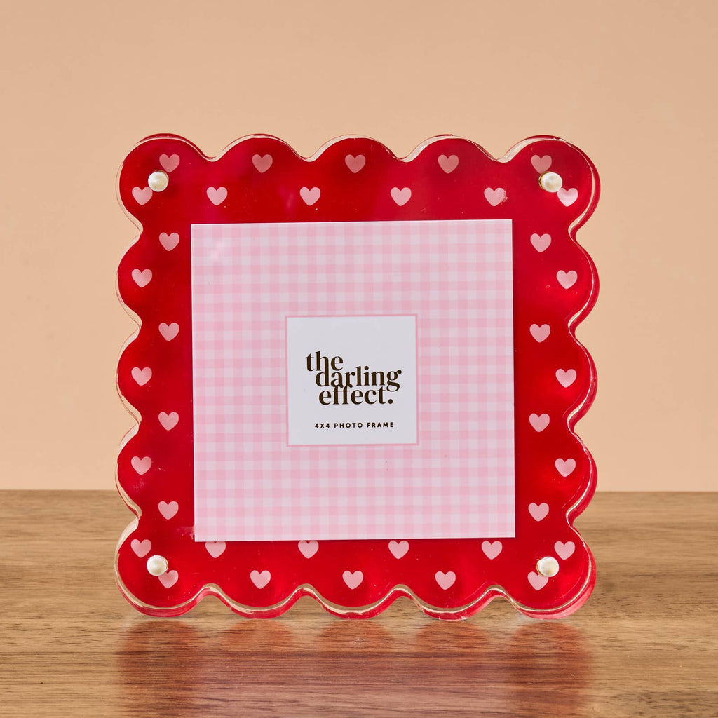 Hearts Scalloped Square Acrylic Picture Frame 4x4