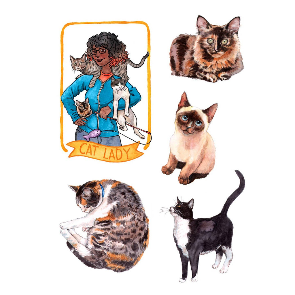 Celebrating kitties of all types—from cute and curious to moody and mysterious—these stickers are purrfect for decorating any object or surface in need of some feline flair. This portable little volume includes 100+ die-cut stickers illustrated by Megan Lynn Kott, creator of the bestselling Cat Tarot deck as well as Kitten Oracle, Claws for Celebration Notecards, the Cat Lady Old Maid game, and more.